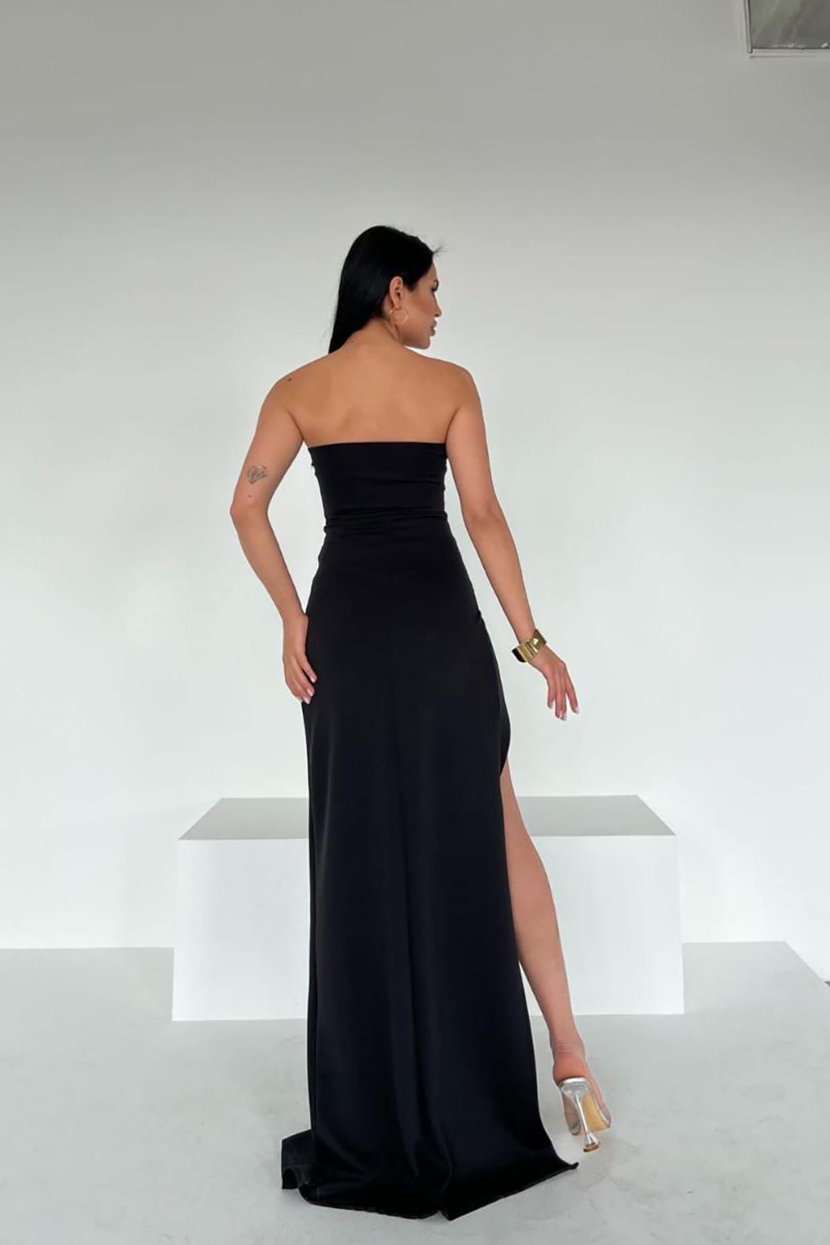 Siyah Kalp Yaka Derin Yırtmaç Detaylı Scuba Kumaş Elbise Siyah Kalp Yaka Derin Yırtmaç Detaylı Scuba Kumaş Elbise DFX582184 L