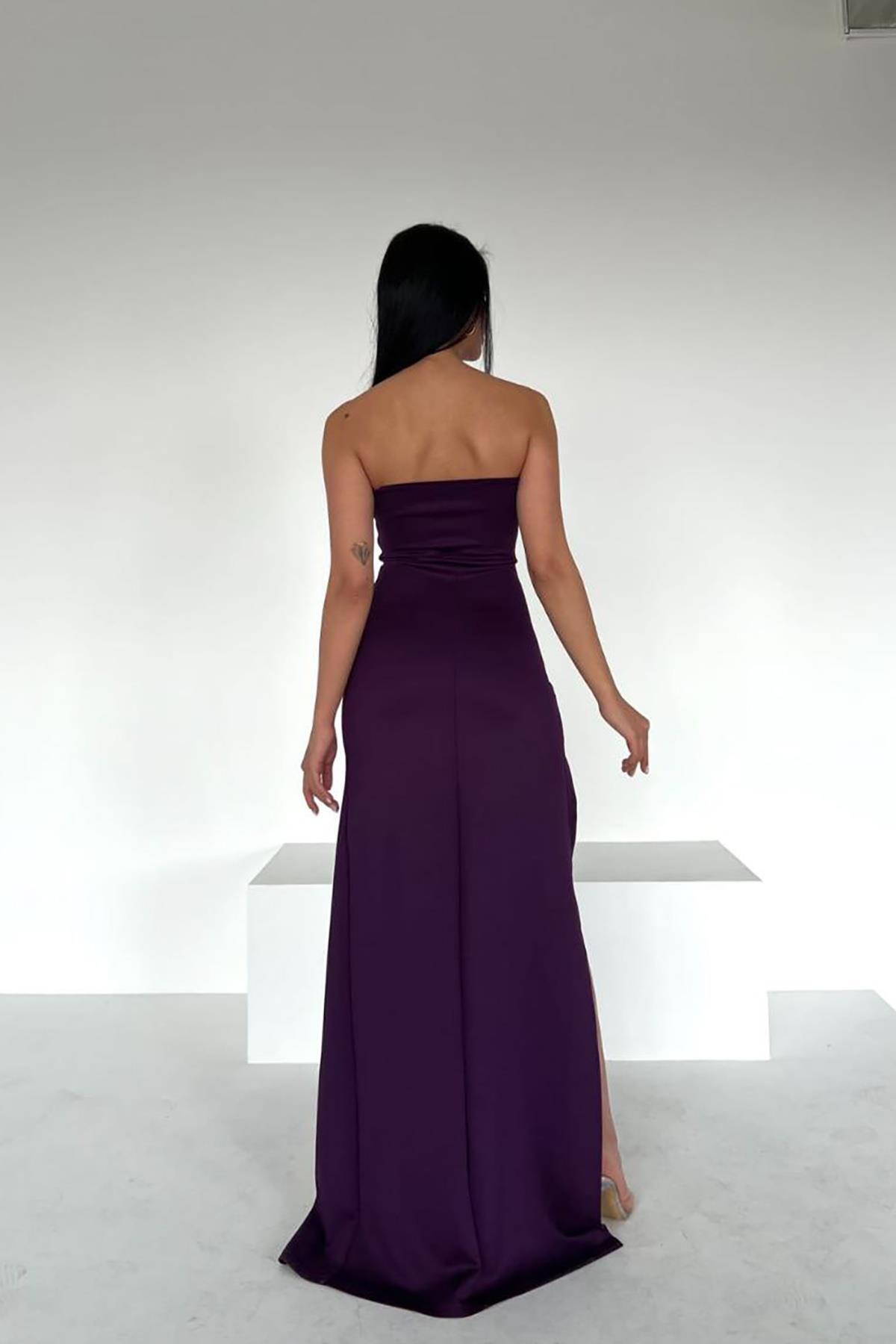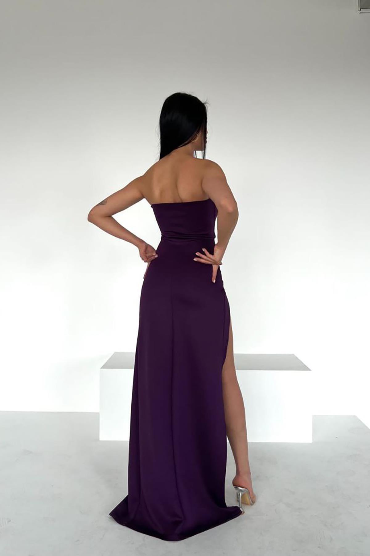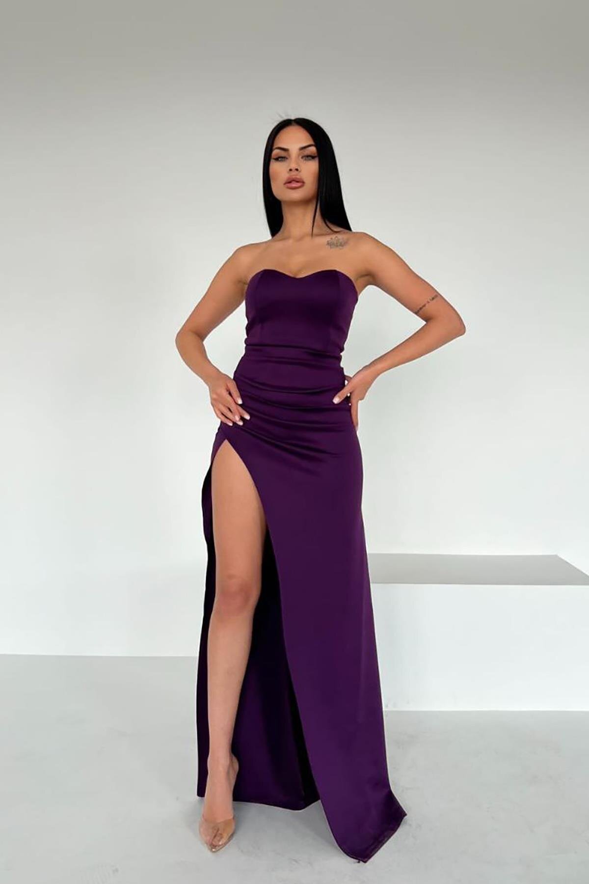 Mor Kalp Yaka Derin Yırtmaç Detaylı Scuba Kumaş Elbise Mor Kalp Yaka Derin Yırtmaç Detaylı Scuba Kumaş Elbise DFX582184 L
