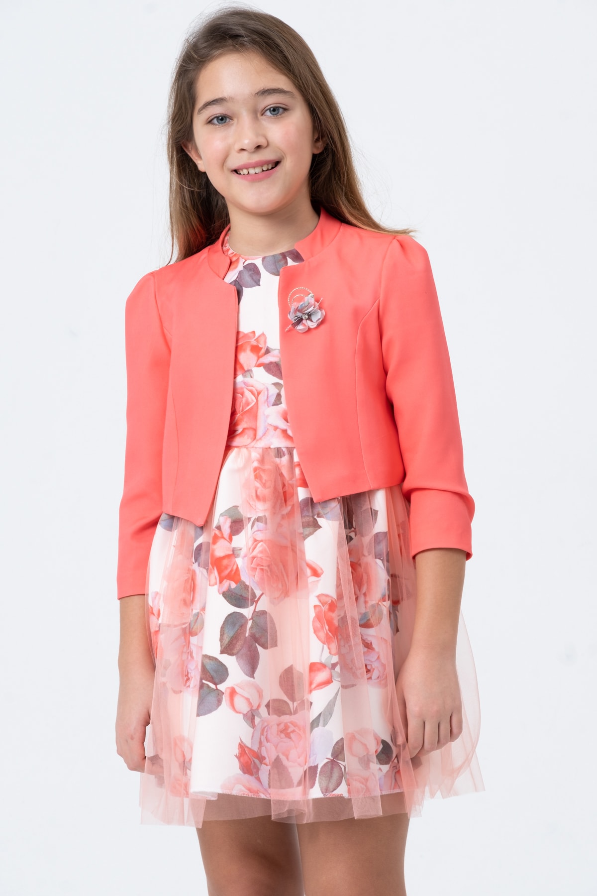 Kız Çocuk Düz Renk Ceketli Güllü Tüllü Bayramlık Mevsimlik Elbise Takım Kız Çocuk Düz Renk Ceketli Güllü Tüllü Bayramlık Mevsimlik Elbise Takım KVC9910 12 Yaş