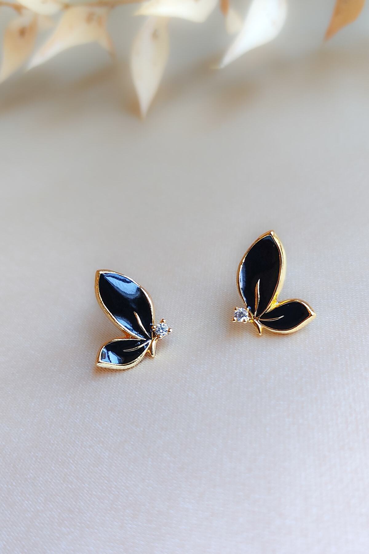 Küçük Zirkon Taşlı Kelebekli Siyah Peri Kadın Küpe Küçük Zirkon Taşlı Kelebekli Siyah Peri Kadın Küpe CST67 تک سایز