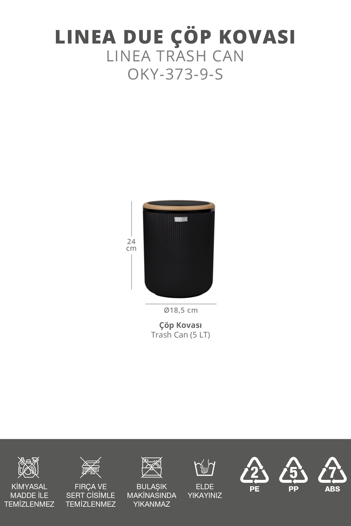 Linea Due Siyah Çizgili Yuvarlak Çöp Kovası Linea Due Siyah Çizgili Yuvarlak Çöp Kovası OKY-433 تک سایز