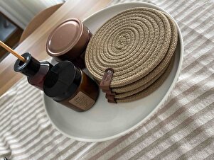 Dekoratif Salyangoz Jüt Dokuma Bardak Altlığı Dekoratif Salyangoz Jüt Dokuma Bardak Altlığı B-003 تک سایز