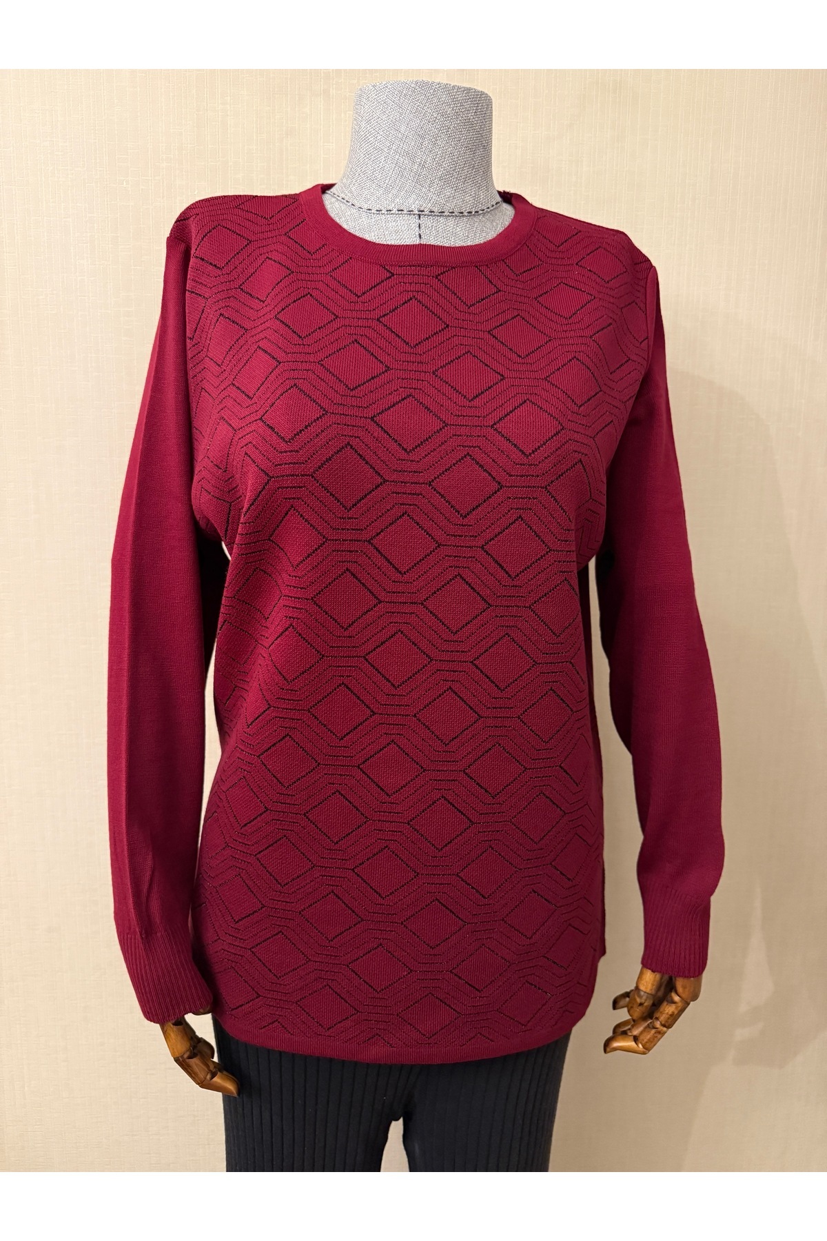 Bisiklet Yuvarlak Yaka Desenli Anne Bluz / Gül Kurusu Bisiklet Yuvarlak Yaka Desenli Anne Bluz / Gül Kurusu TKTR-587 XL