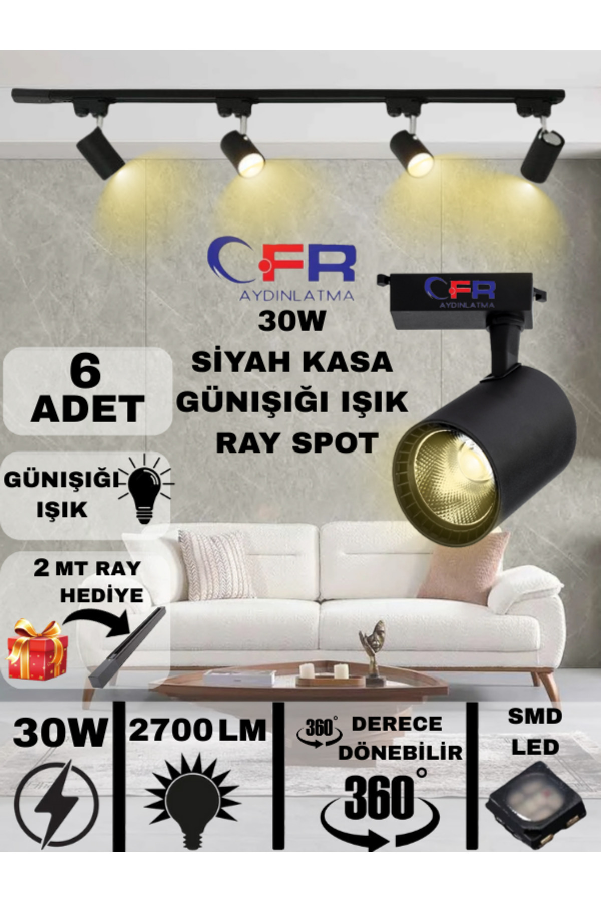 30 Watt Siyah Kasa Günışığı 6 Adet Ray Spot - Iki Adet 1 Metre Ray - Kendinden Led'li Ray Spot 30 Watt Siyah Kasa Günışığı 6 Adet Ray Spot - Iki Adet 1 Metre Ray - Kendinden Led'li Ray Spot 30W-SG-6SPT-2MT-RAY تک سایز