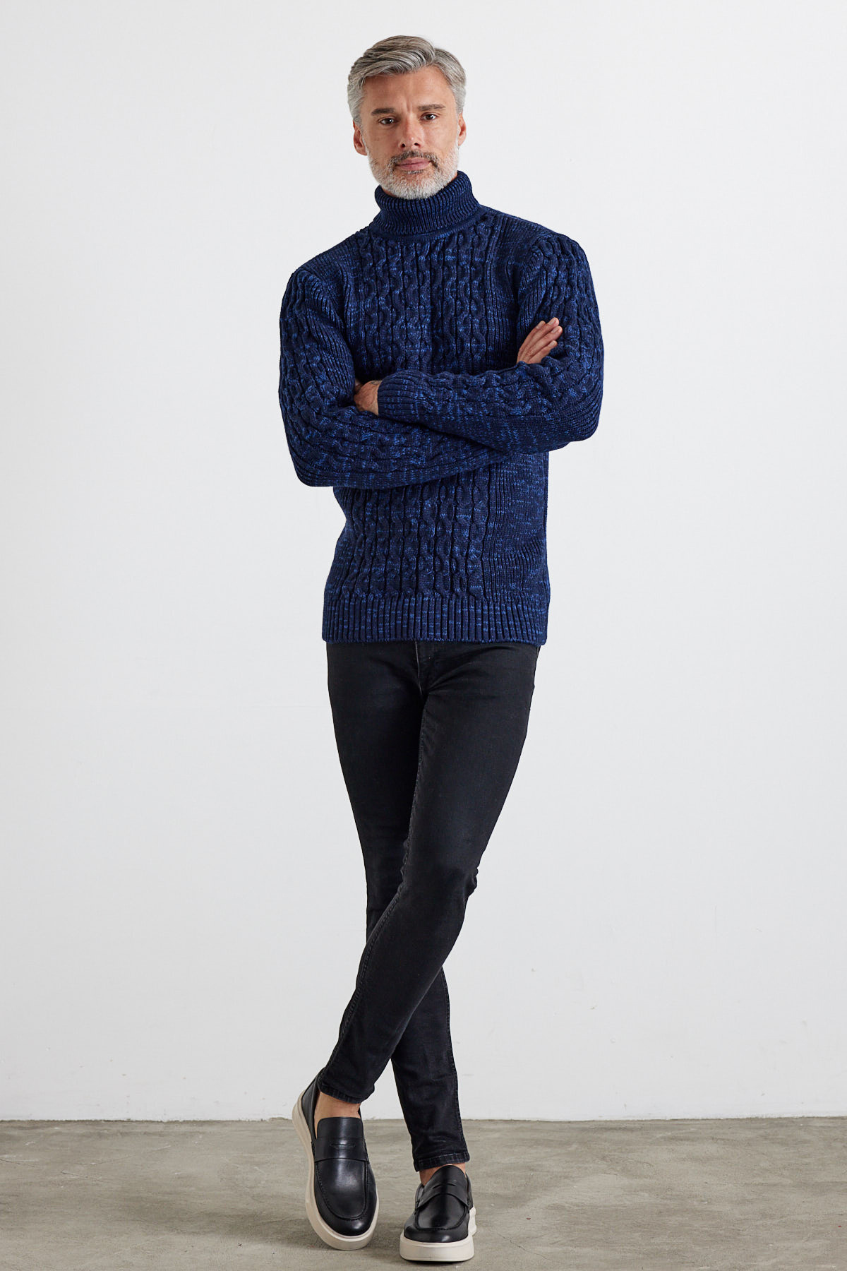 Erkek Lacivert Saç Örgülü Baklava Desenli Tam Balıkçı Fitilli Kalın Triko Kazak Erkek Lacivert Saç Örgülü Baklava Desenli Tam Balıkçı Fitilli Kalın Triko Kazak COR1509 2XL