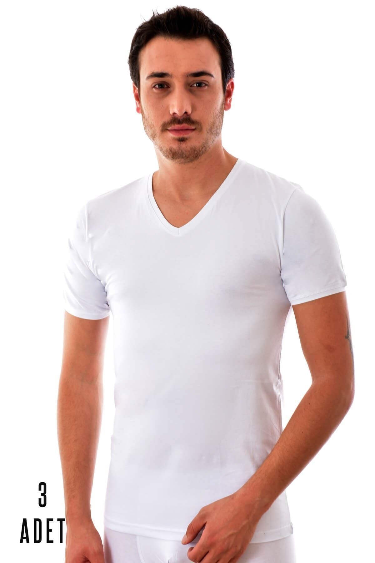 Erkek V Yaka Likralı Kısa Kol Fanila Atlet 1303 - 6 Adet Erkek V Yaka Likralı Kısa Kol Fanila Atlet 1303 - 6 Adet KB2263 2XL