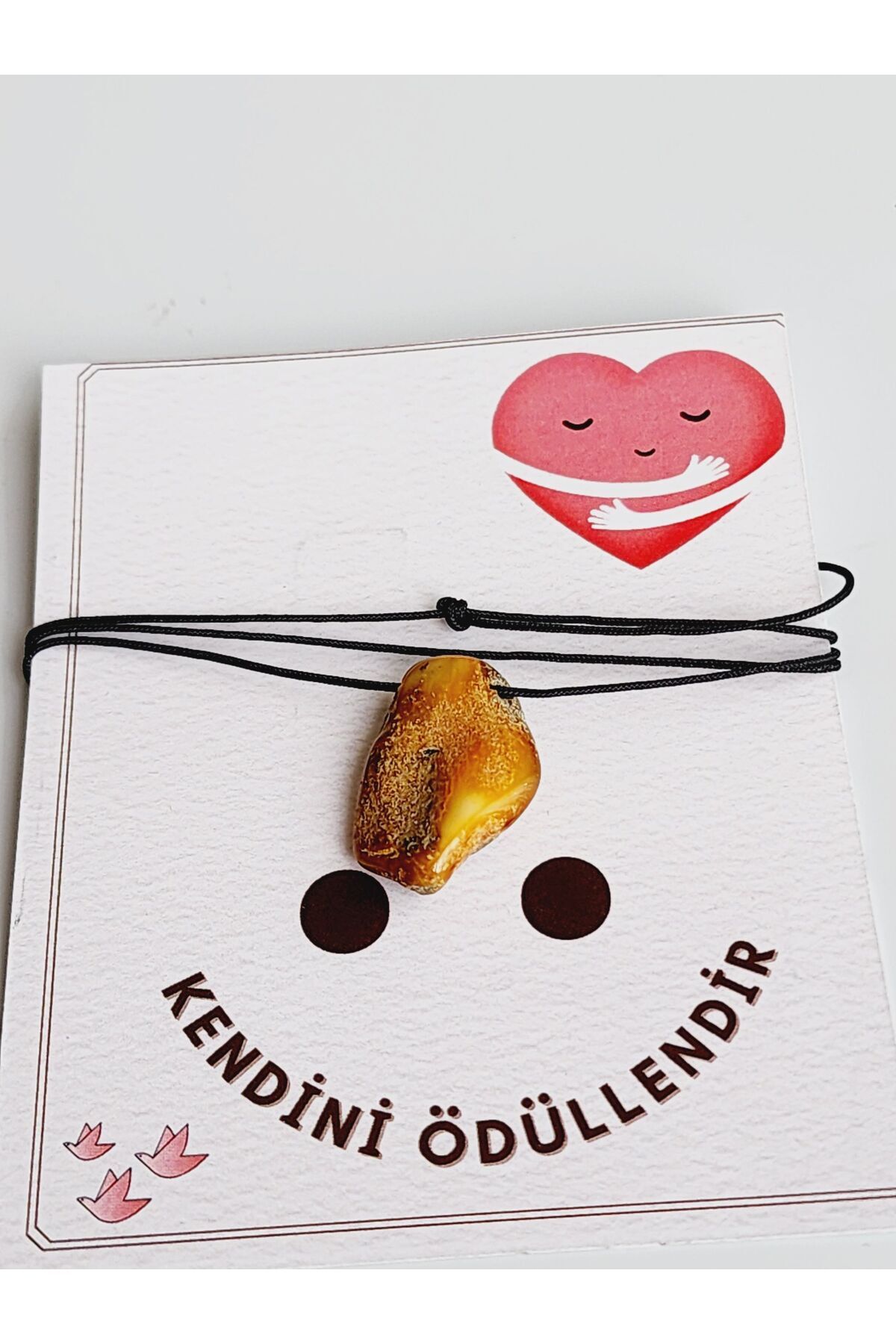 Kehribar Çelik Kolye Kehribar Çelik Kolye Kehribar uçlu 60 cm