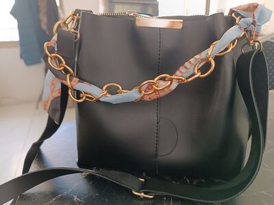 Kadın Fularlı Zincir Aksesuarlı Yumuşak Deri 3 Bölmeli El Kol Ve Omuz Çantası Kadın Fularlı Zincir Aksesuarlı Yumuşak Deri 3 Bölmeli El Kol Ve Omuz Çantası ESTUTEŞALI تک سایز