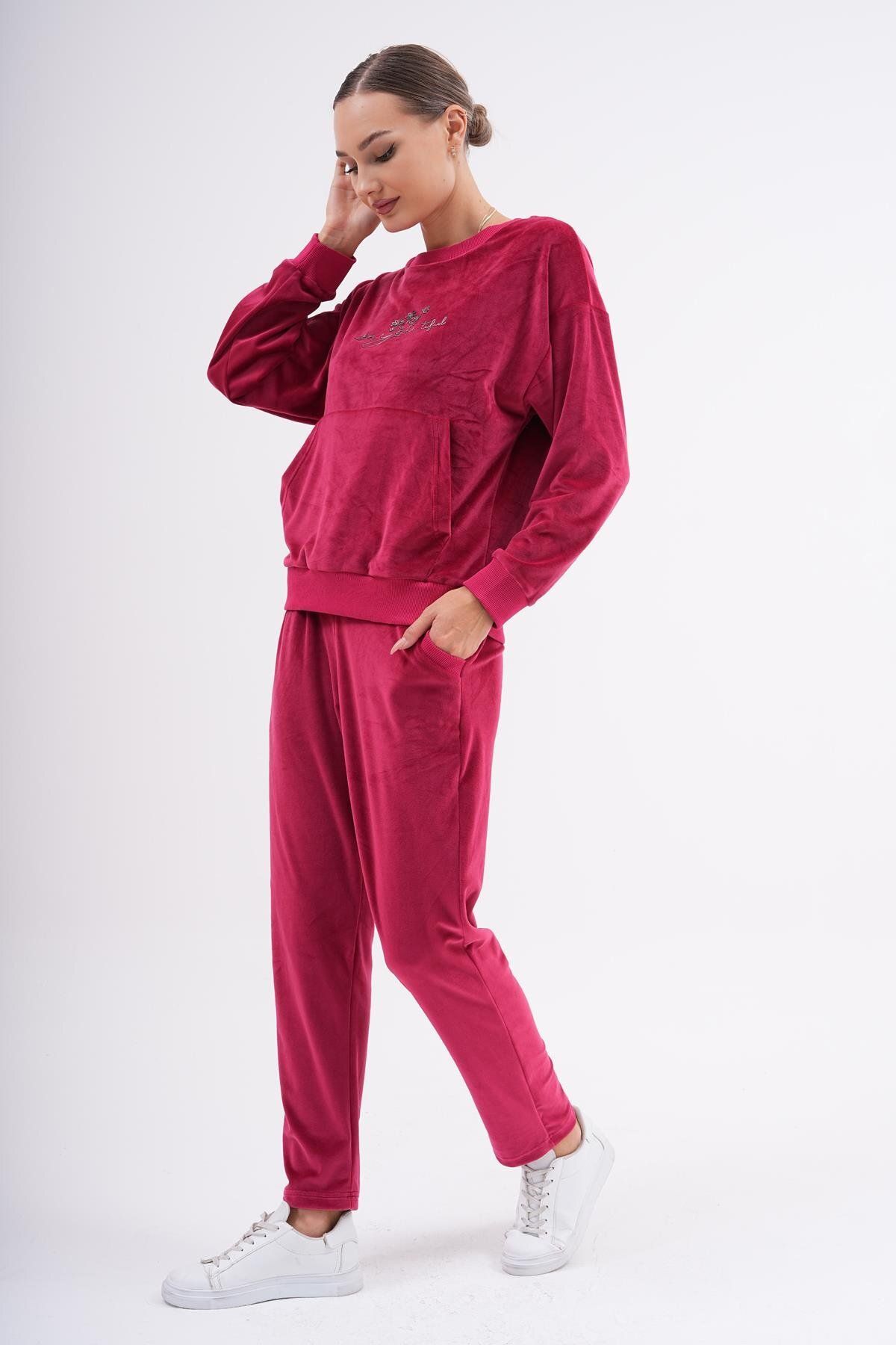 Organik Pamuklu Kadife Bayan Eşofman Takımı Yeşil Organik Pamuklu Kadife Bayan Eşofman Takımı Yeşil LINDA-9 XL