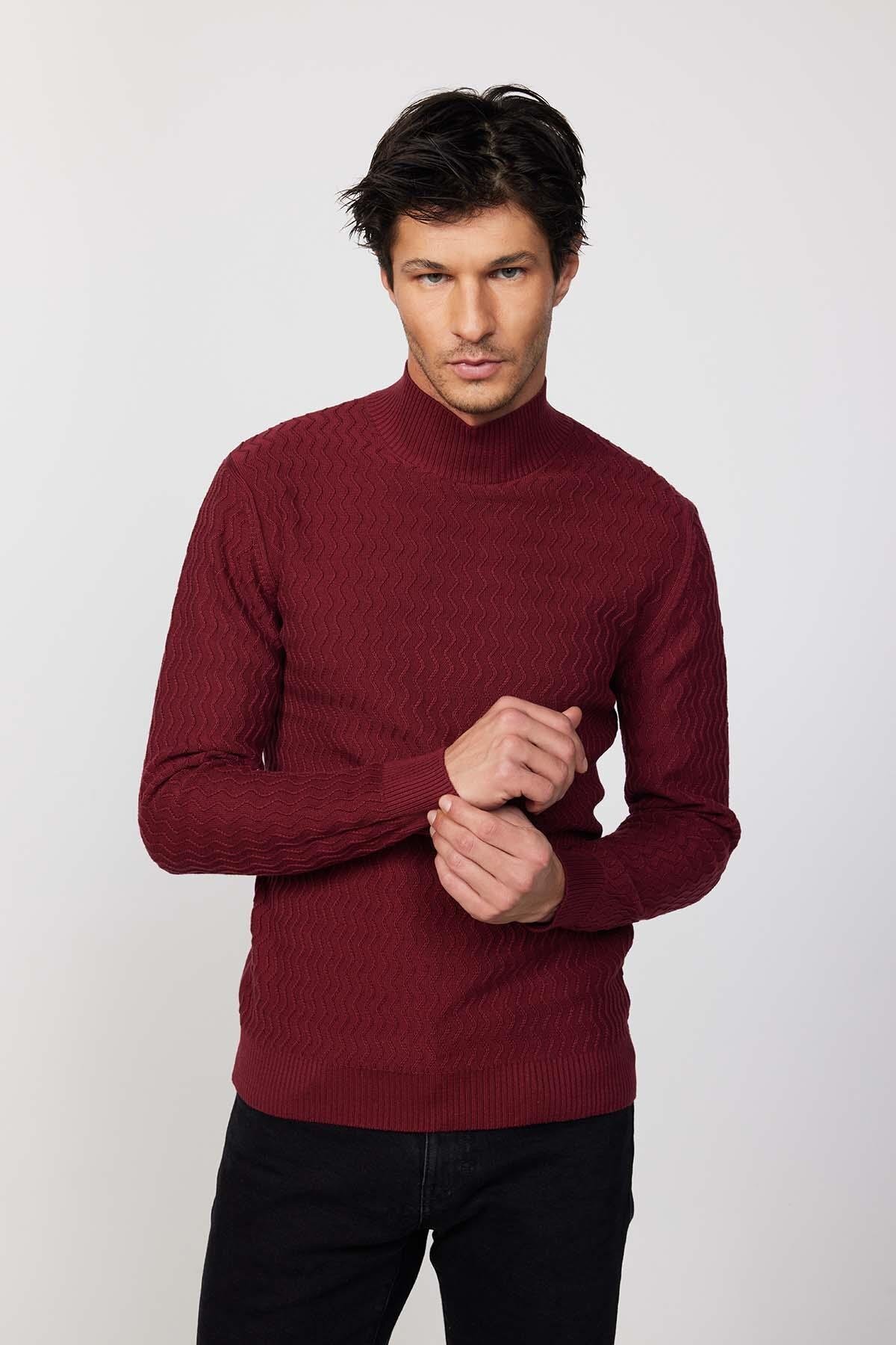 Erkek Slim Fit Dar Kesim Tam Balıkçı Yaka Düz Yün Kırmızı Triko Kazak Erkek Slim Fit Dar Kesim Tam Balıkçı Yaka Düz Yün Kırmızı Triko Kazak KZ220002-02 2XL