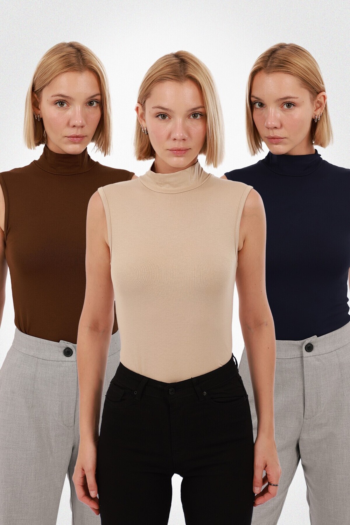 Kadın Beyaz Acı Kahve Krem 3'lü Parmak Detaylı Body Kadın Beyaz Acı Kahve Krem 3'lü Parmak Detaylı Body PRMK30 L
