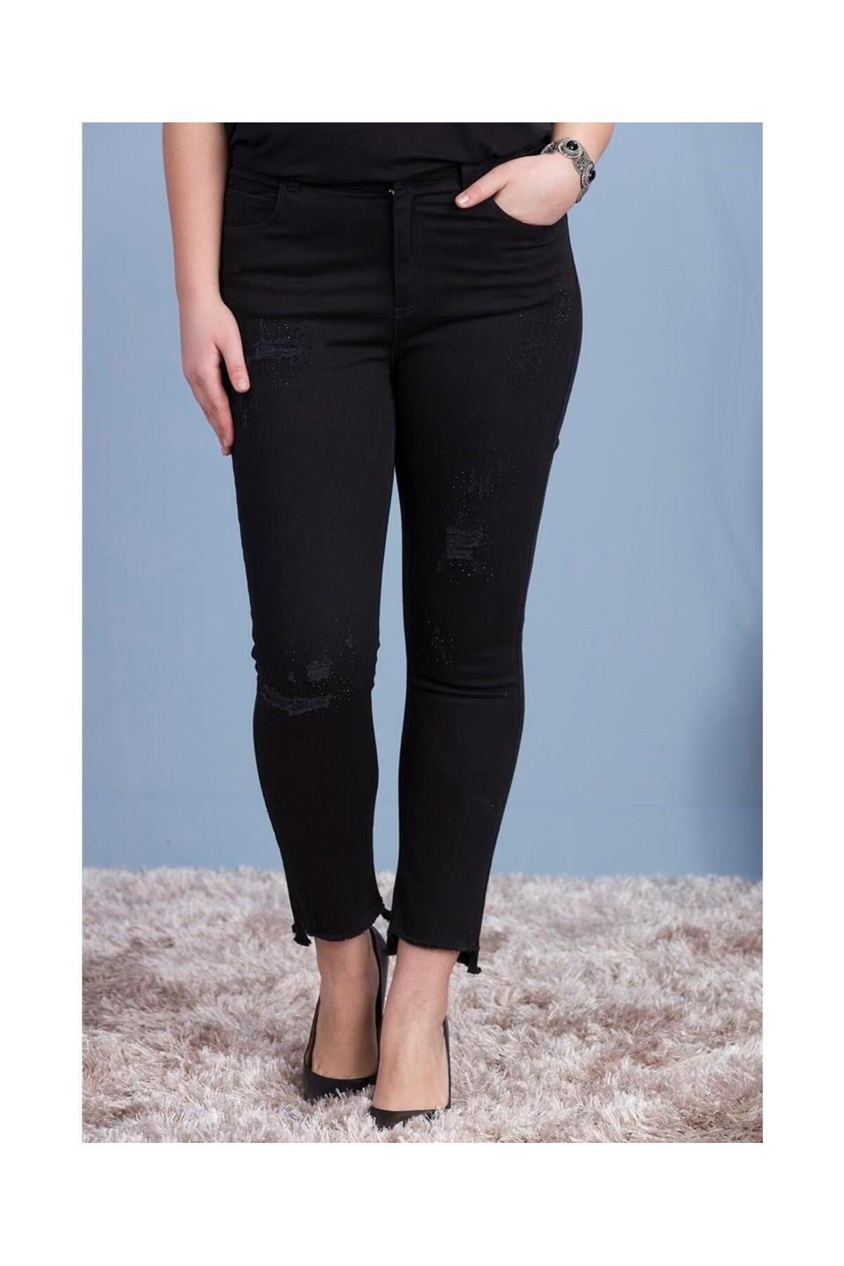 Boyama Detaylı Taşlanmış Kot Pantolon Boyama Detaylı Taşlanmış Kot Pantolon 1344-MAVİ 42