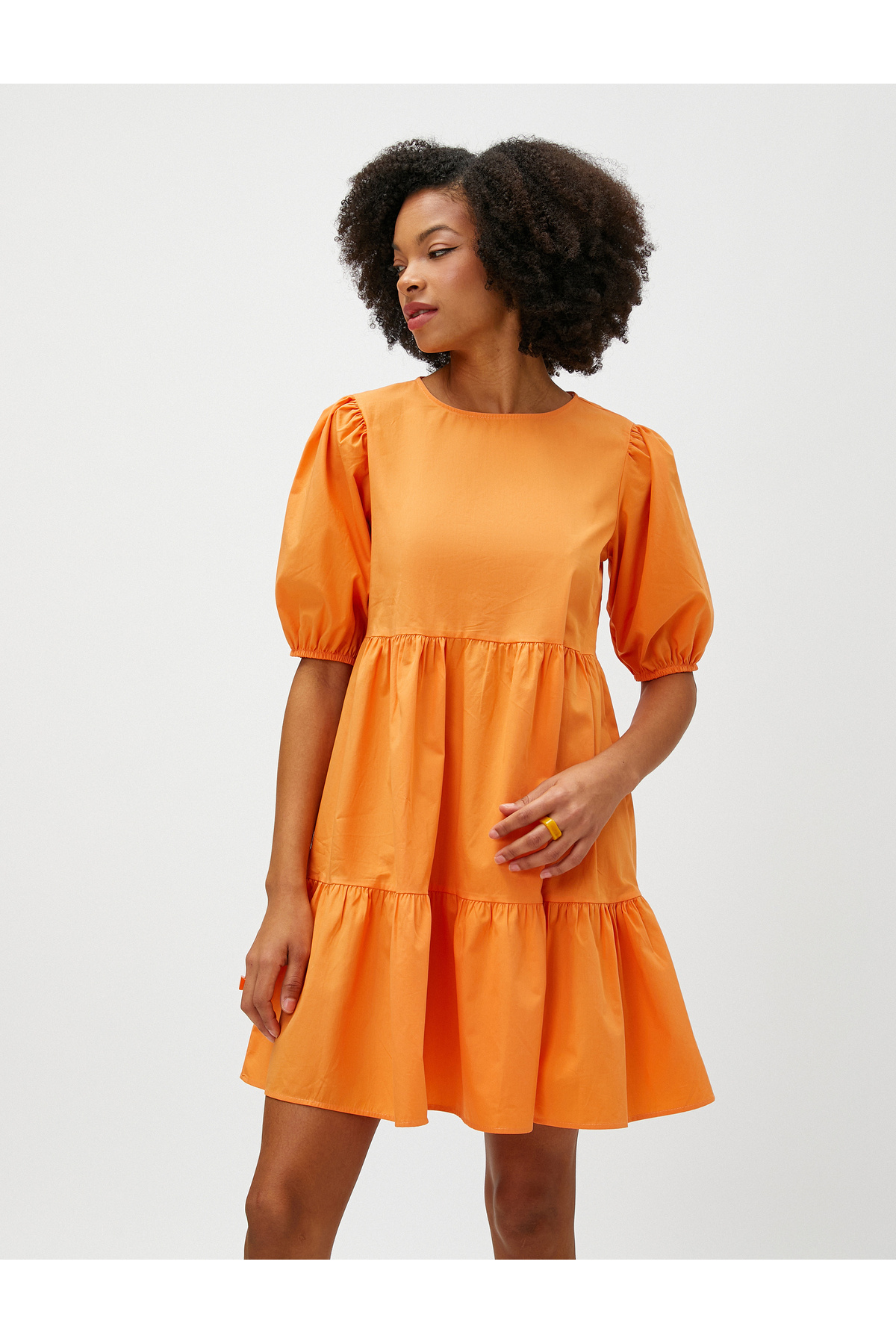 Mini Poplin Elbise Balon Kollu Volanlı Bisiklet Yaka Pamuklu Mini Poplin Elbise Balon Kollu Volanlı Bisiklet Yaka Pamuklu 3SAL80047IW 40
