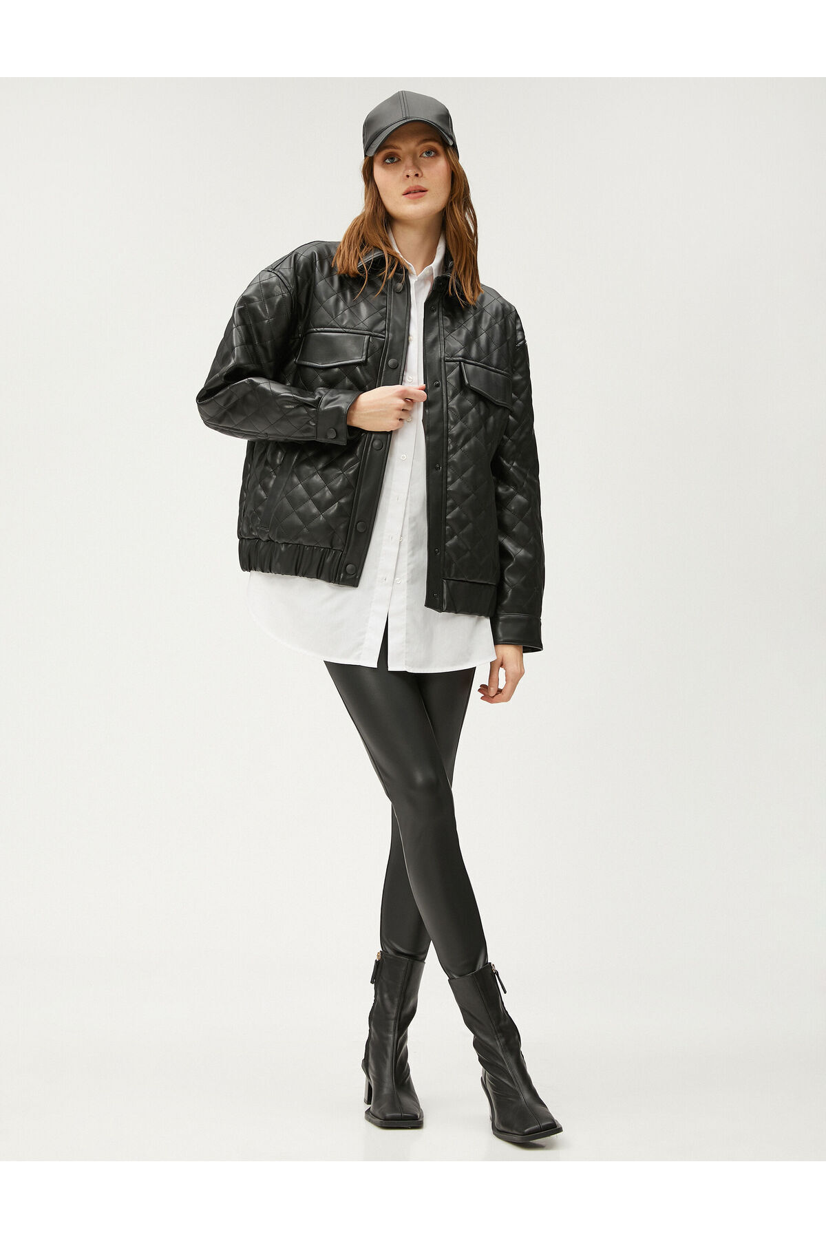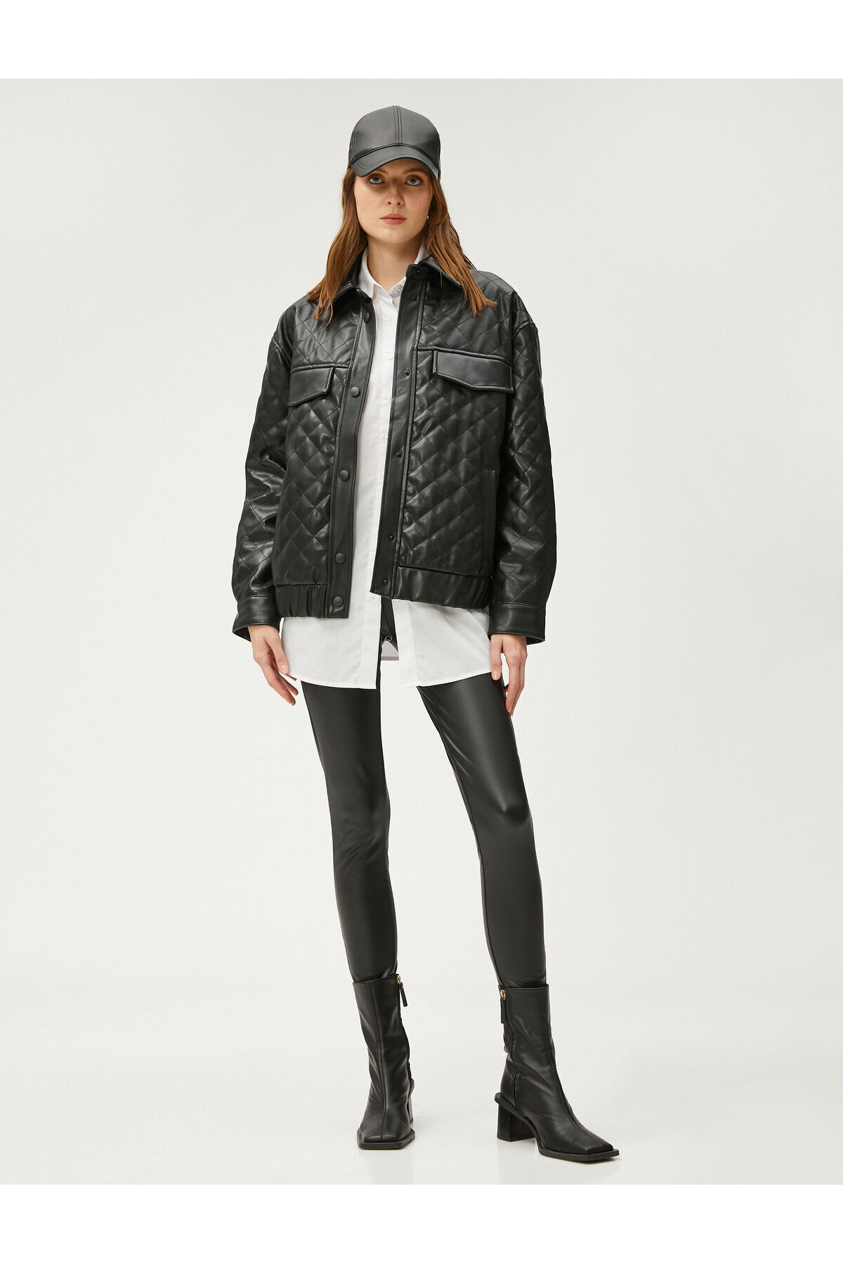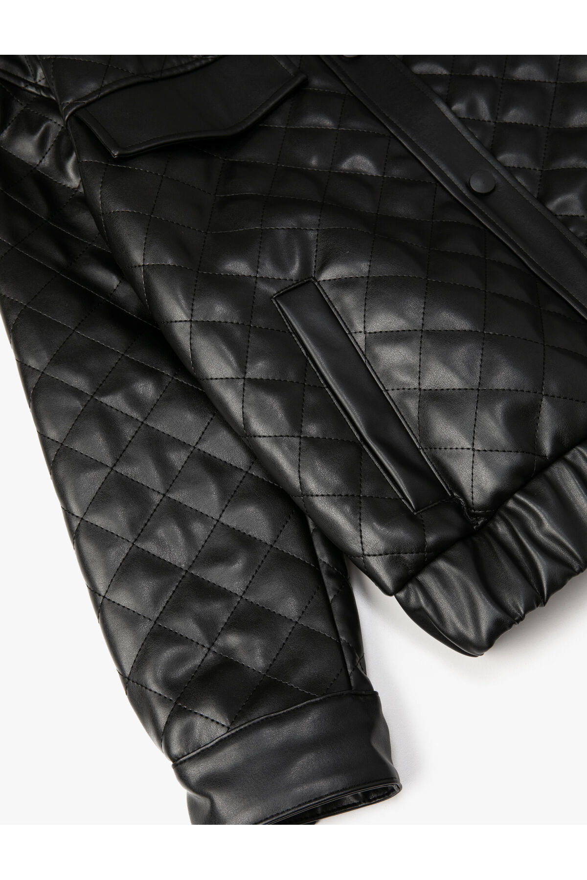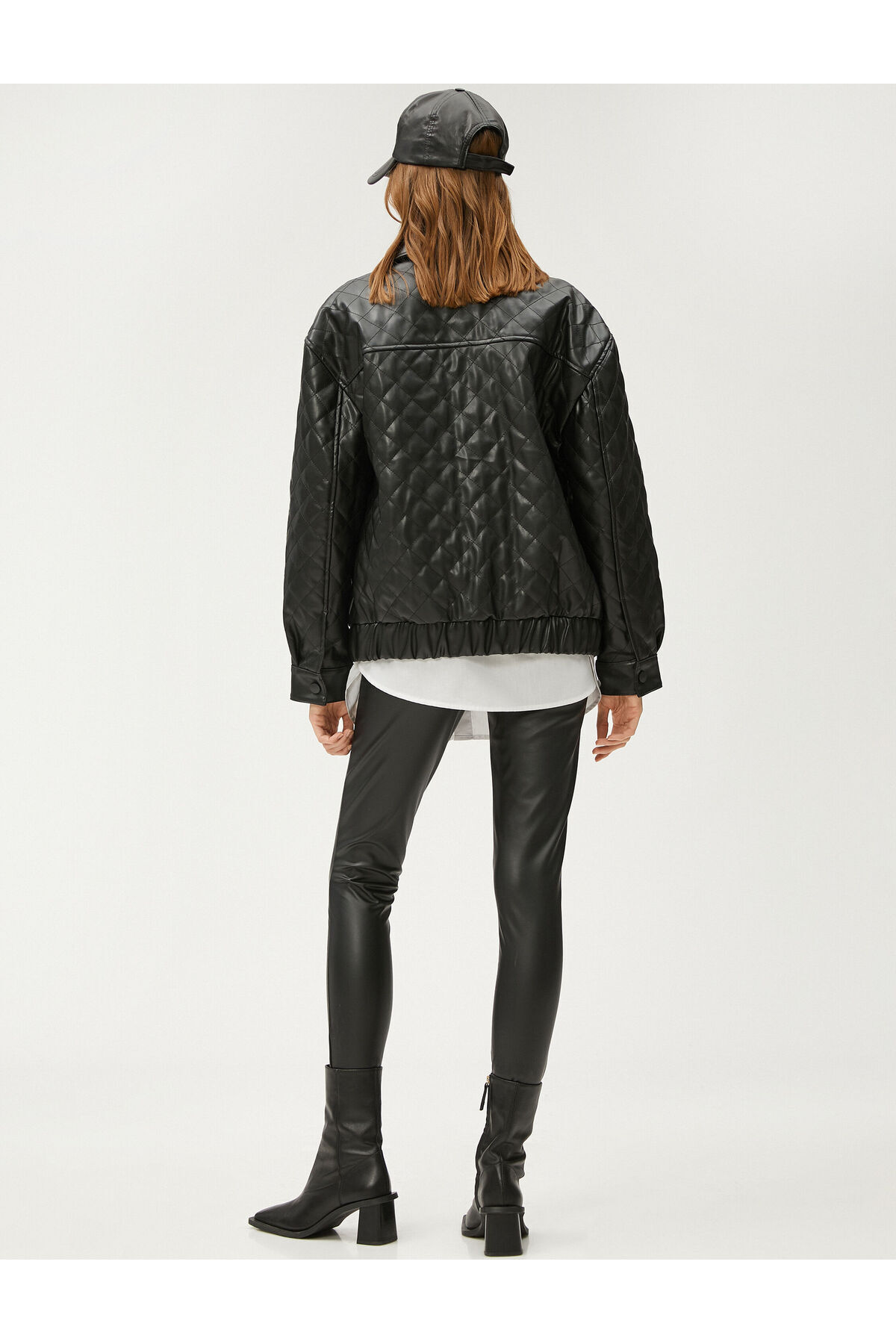 Deri Görünümlü Kapitone Ceket Deri Görünümlü Kapitone Ceket 3WAK20316EW 42