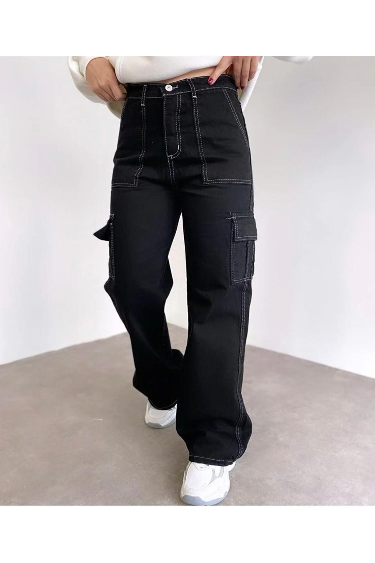 Y2k Beyaz Ters Dikişli Siyah Kargo Cep Wide Unisex Jeans Y2k Beyaz Ters Dikişli Siyah Kargo Cep Wide Unisex Jeans P1 XL