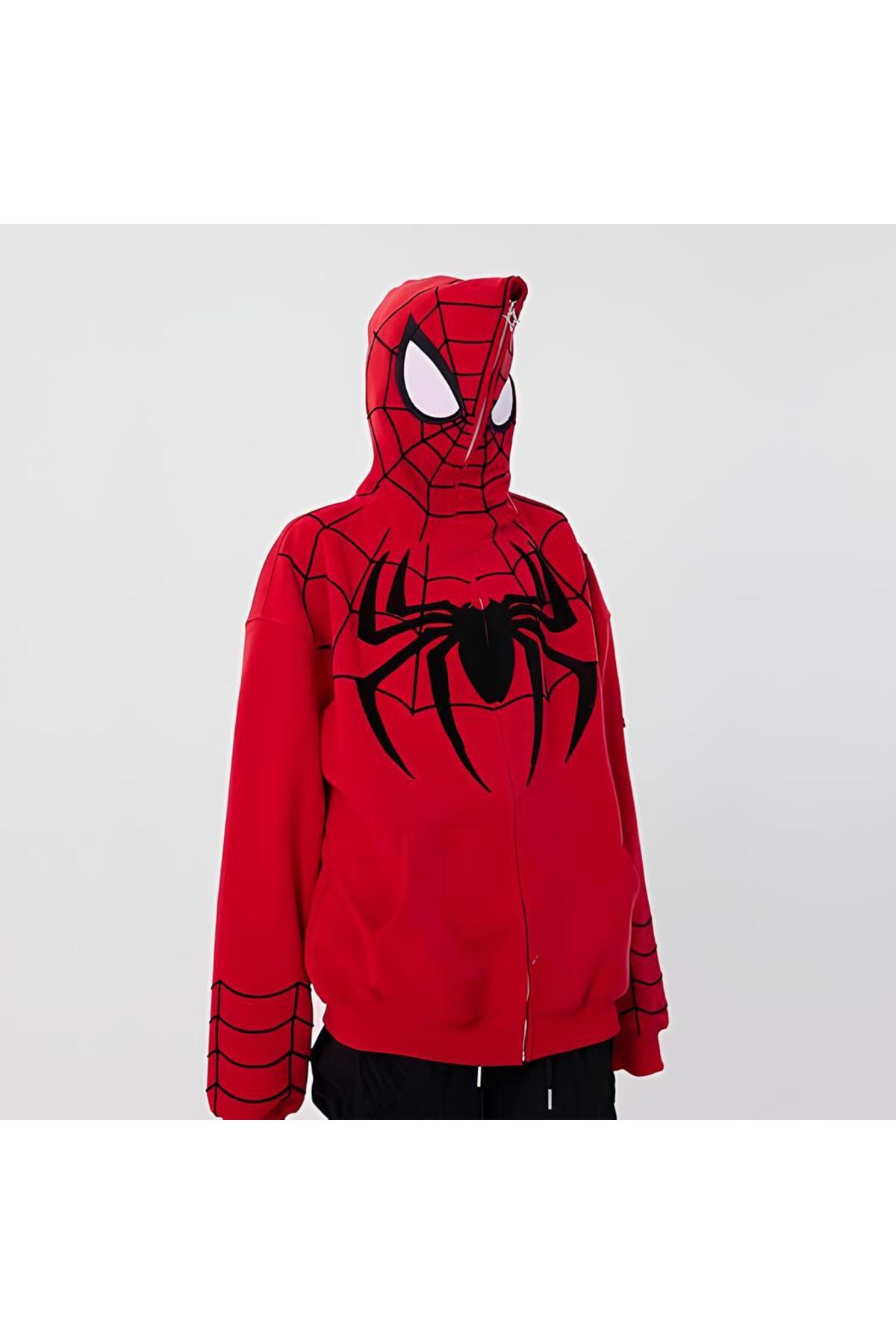Kırmızı Allover Spider Fermuarlı (UNİSEX) Kapüşonlu - Kırmızı Allover Spider Fermuarlı (UNİSEX) Kapüşonlu - alloverspider XL