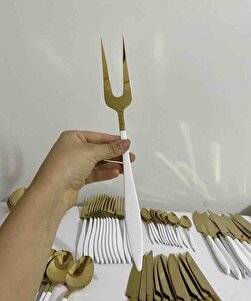 Gold Beyaz 89 Parça 12 Kişilik Çatal Kaşık Bıçak Takımı Gold Beyaz 89 Parça 12 Kişilik Çatal Kaşık Bıçak Takımı yakut gold beyaz تک سایز