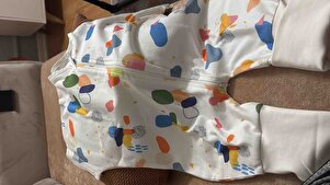 Uyku tulumlarının bu denli pahalı olmasına anlam veremiyorum. Pamuklu normal tulumlar bunların 5’te 1i fiyatında anca. Kalıp olarak büyük ama 1 beden daha büyüğünü alsam mı diye tereddütte kaldım da uğraşmak istemiyorum. Yumuşacık pamuk ve kaliteli bir şeye benziyor. Evim sıcak olduğu için kışın giymesi için aldım. Uyku tulumları mevsimsiz şeyler zaten önemli olan oda sıcaklığı yaz kış fark etmez. Yıkandıktan sonra renginde biraz solma oluyor sanki ama kumaşı çok iyi.. ince pijama ve kısa kollu body ile giydirdim, sıcacık tuttu 23-24 derecede.