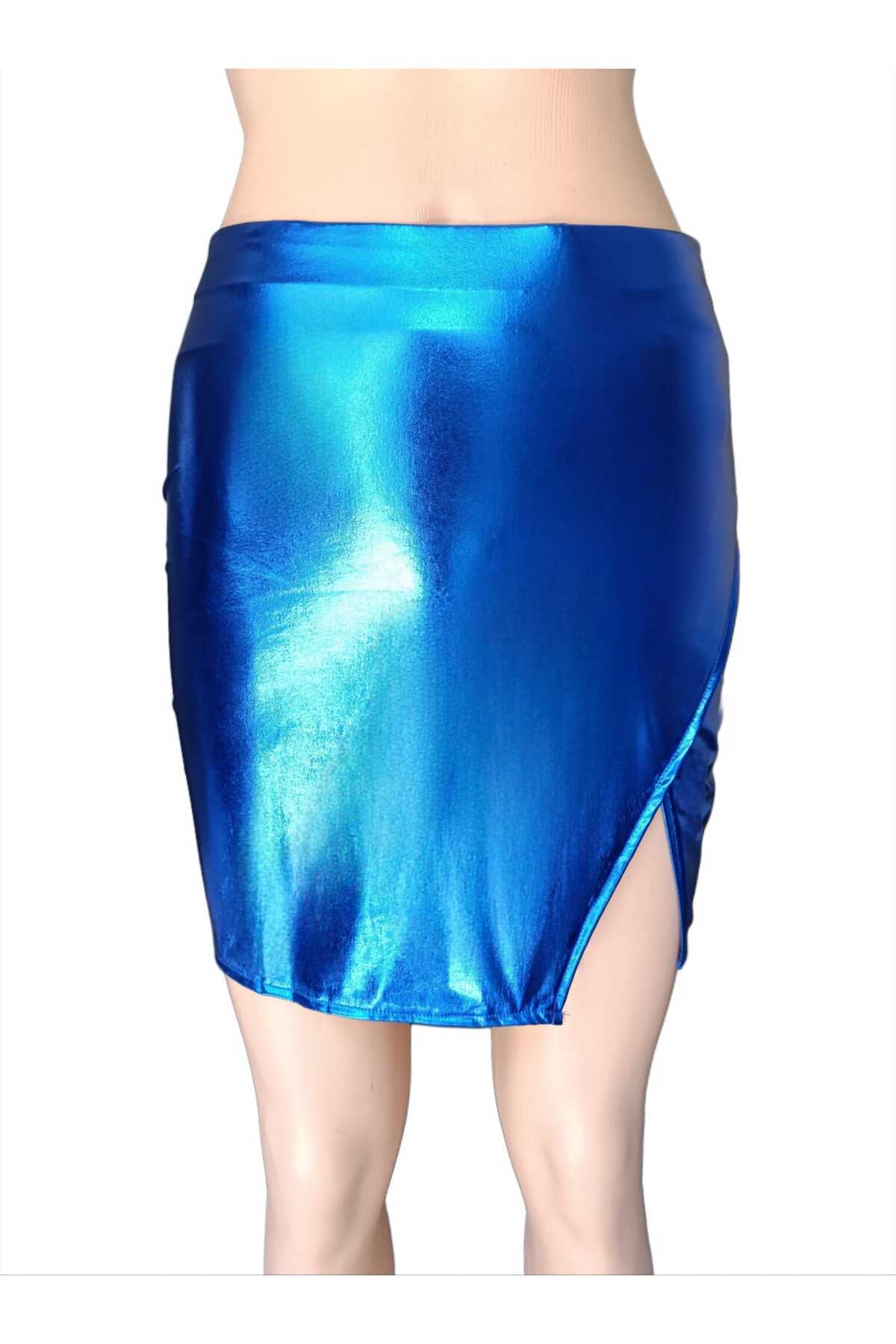 Kadın Bodycon Tek Bacak Yırtmaç Parlak Kumaş Mini Etek Kadın Bodycon Tek Bacak Yırtmaç Parlak Kumaş Mini Etek PRLKTK L