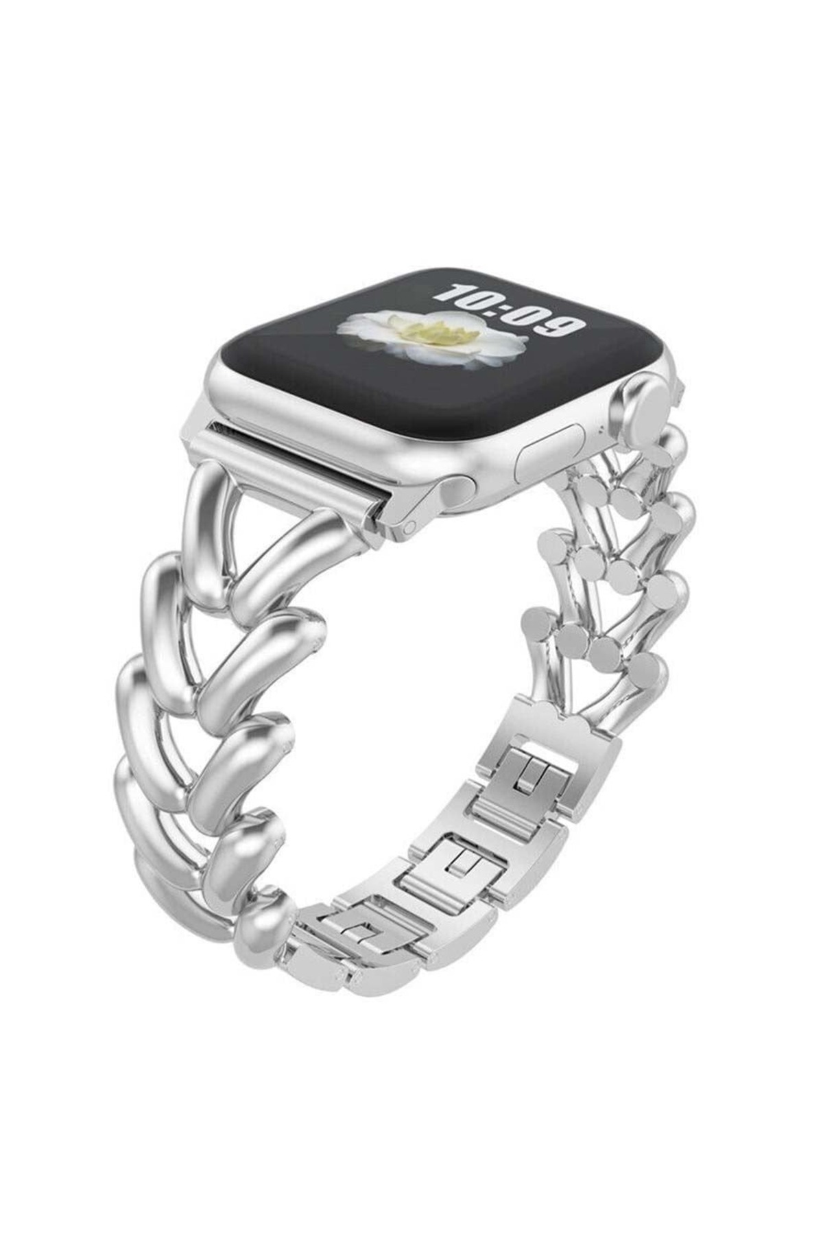 Apple Watch 2/3/4/5/6/7/8/9/se 38mm 40mm 41mm Uyumlu Şerit Görünümlü Klipsli Metal Kordon Apple Watch 2/3/4/5/6/7/8/9/se 38mm 40mm 41mm Uyumlu Şerit Görünümlü Klipsli Metal Kordon Mİ-STRAP-Seven-Beads-Steel-Belt-015 تک سایز