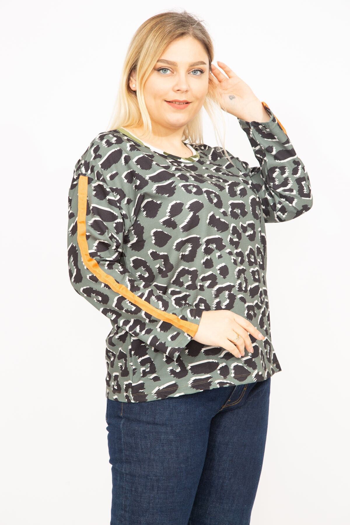 Kadın Haki Büyük Beden Kamuflaj Desenli Bluz 65n35741 Kadın Haki Büyük Beden Kamuflaj Desenli Bluz 65n35741 65N35741 54-56