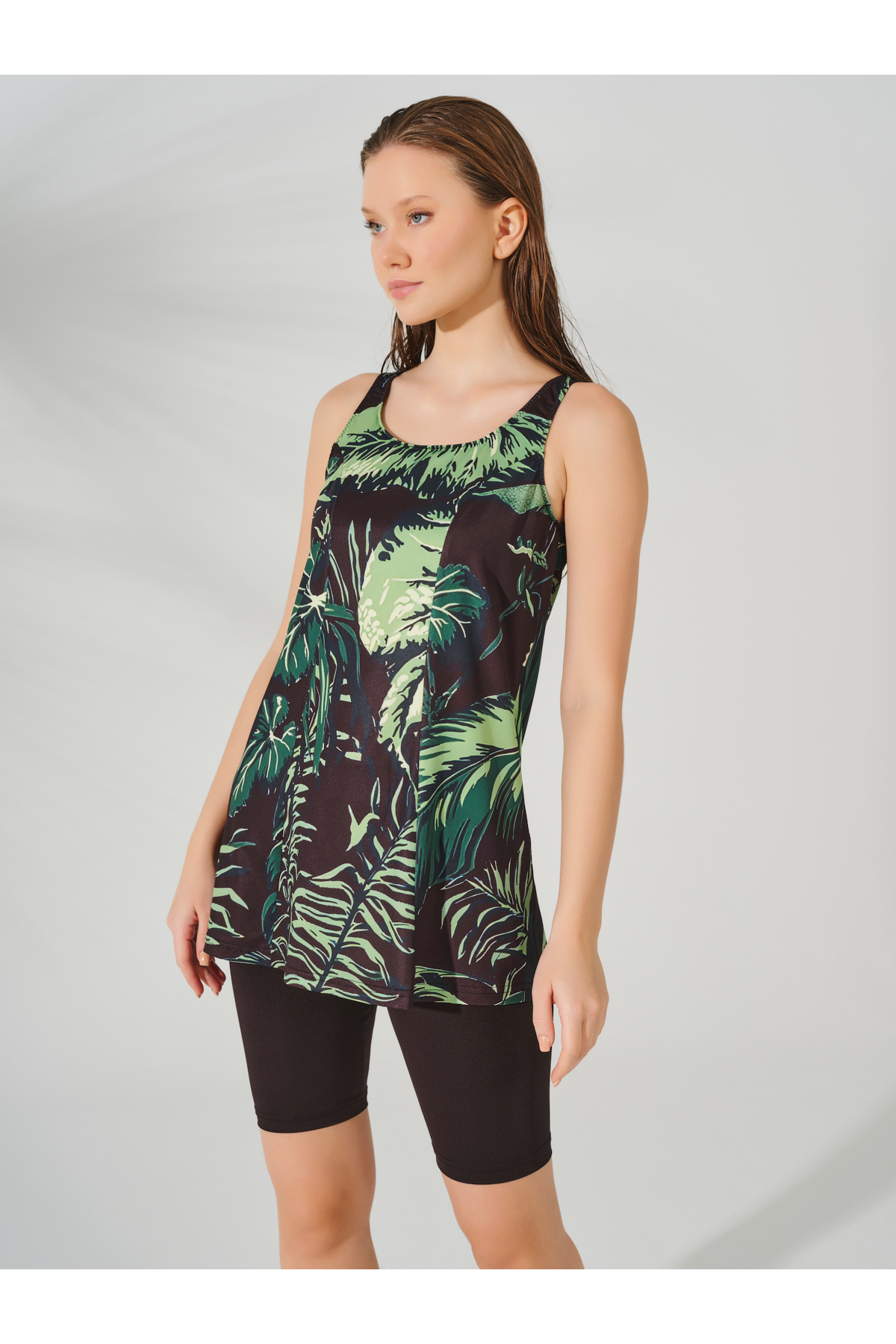 Önü Büzgü Detaylı Sıfır Kol Yarı Kapalı Mayo Önü Büzgü Detaylı Sıfır Kol Yarı Kapalı Mayo ALF23818 3XL