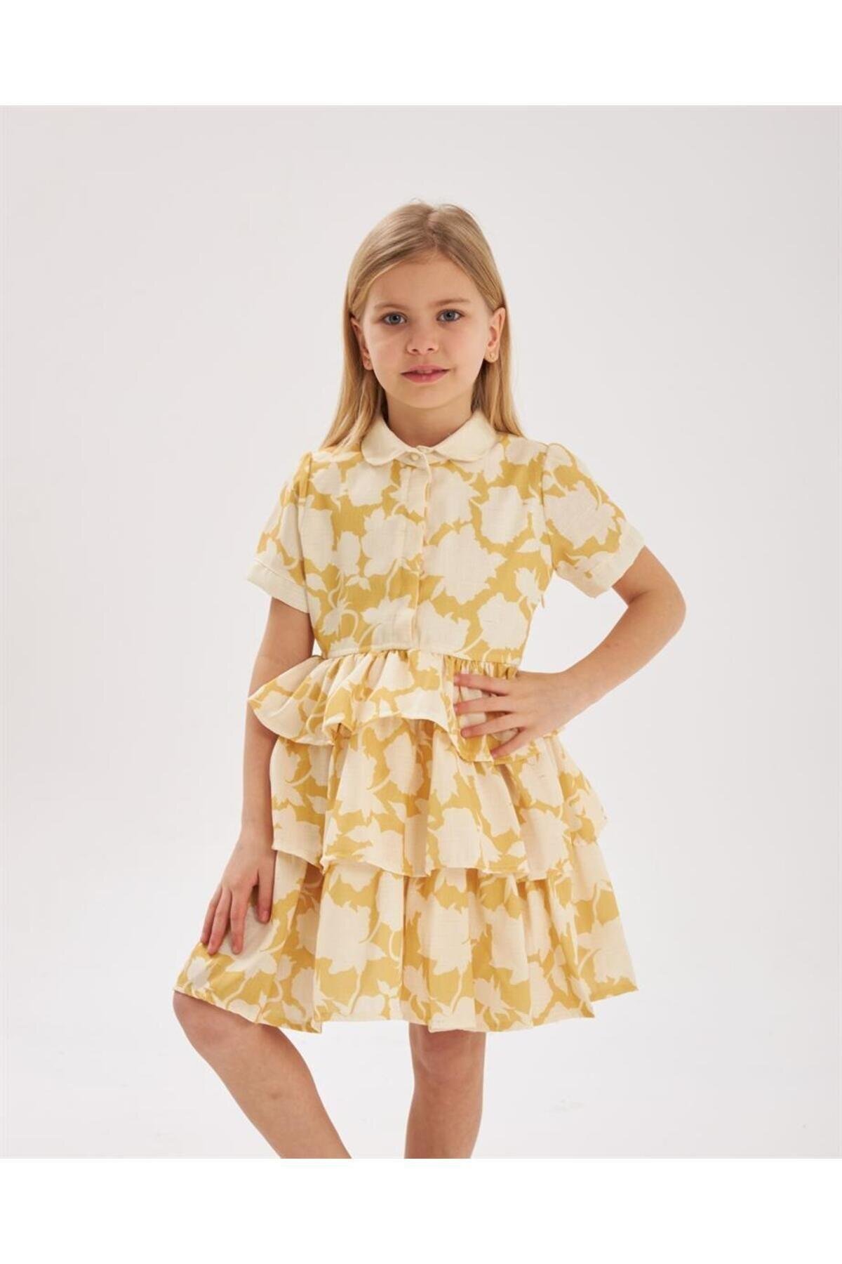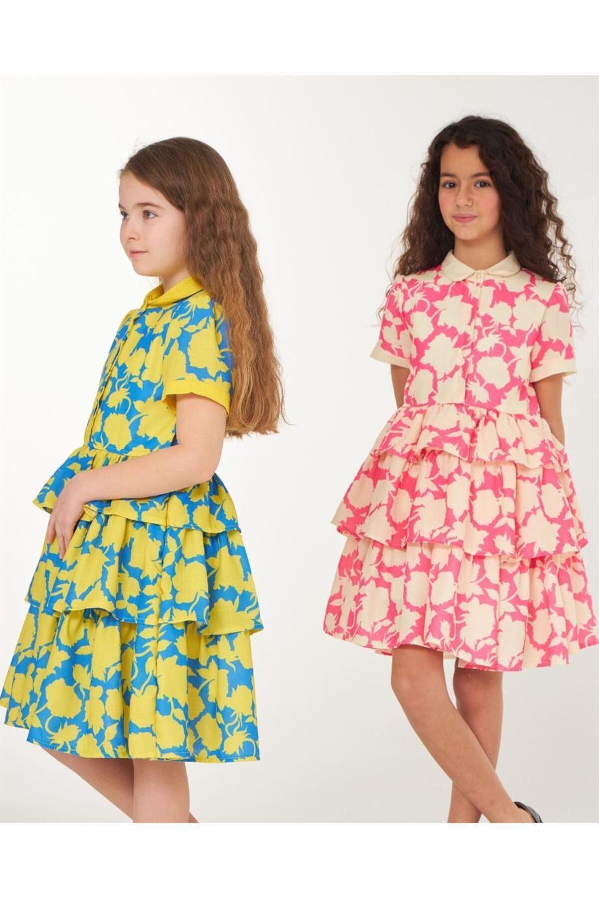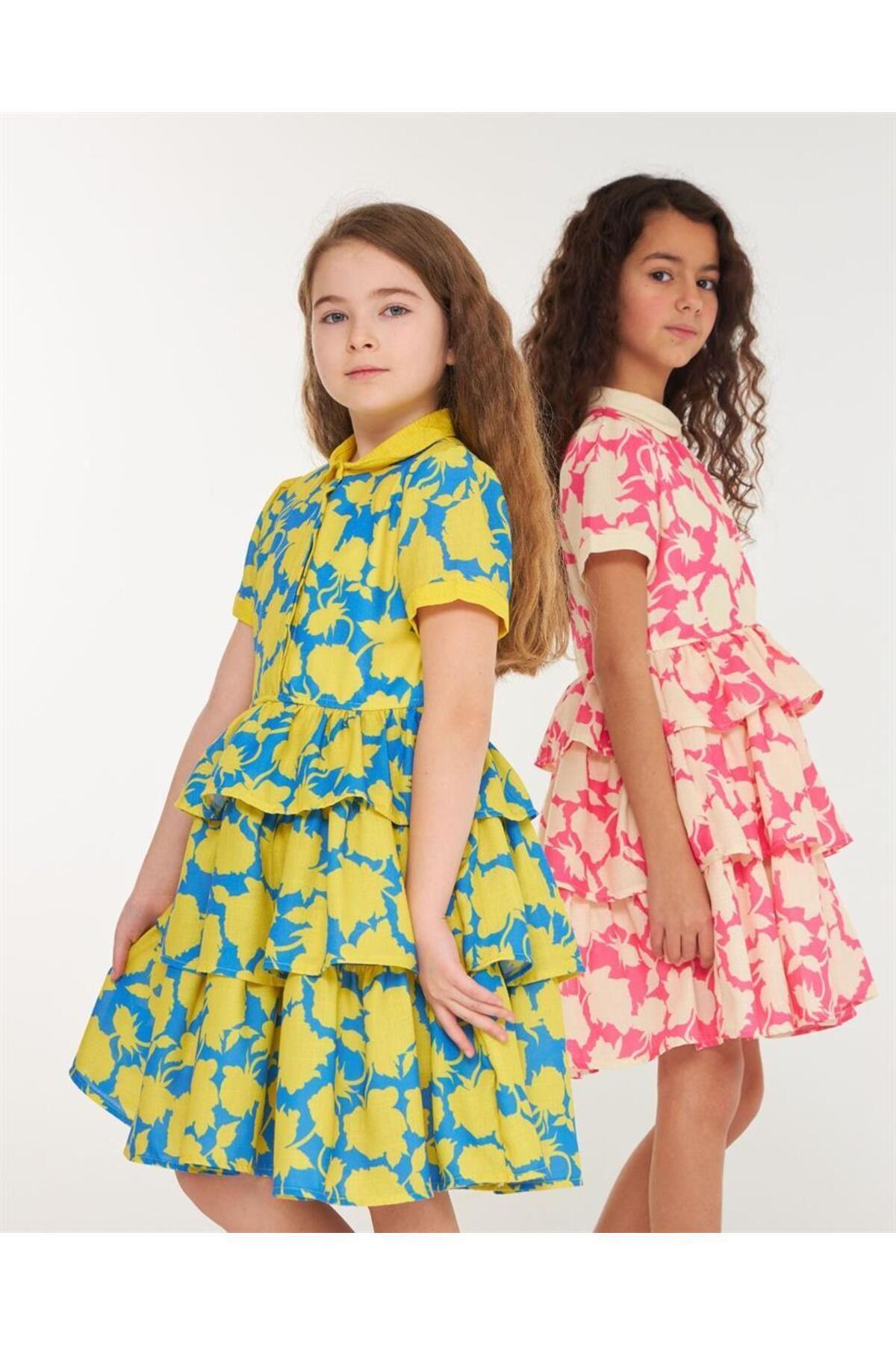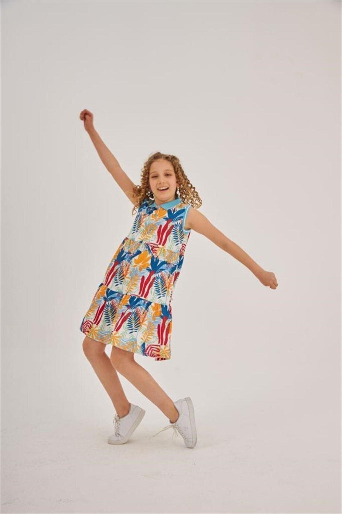Kız Çocuk Renkli Kat Kat Pamuk Keten Elbise Kız Çocuk Renkli Kat Kat Pamuk Keten Elbise VK0050-1 12 Yaş