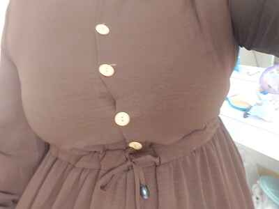 Büzgülü Düğmeli Ayrobin Elbise Kahverengi Büzgülü Düğmeli Ayrobin Elbise Kahverengi 8811 48
