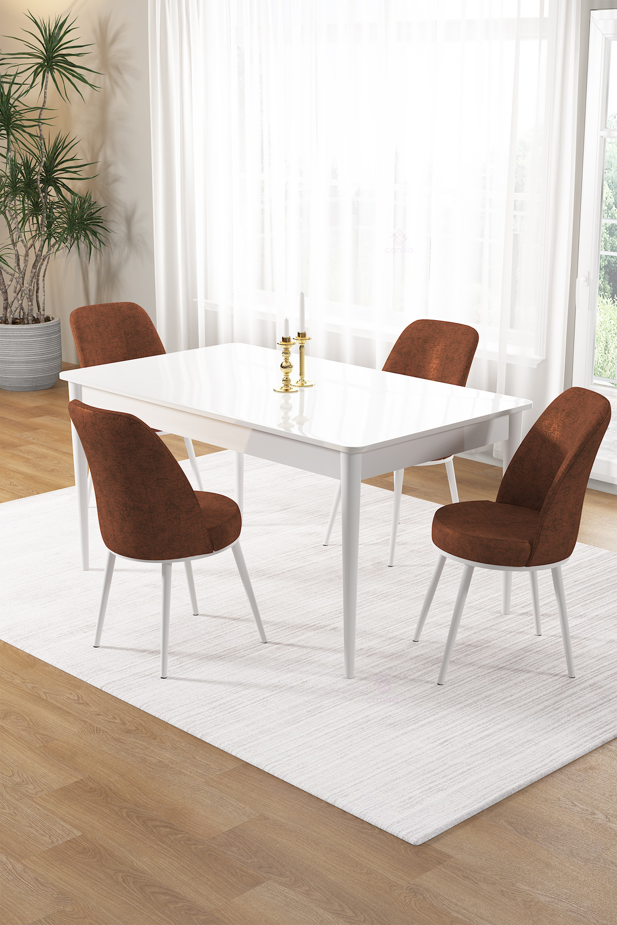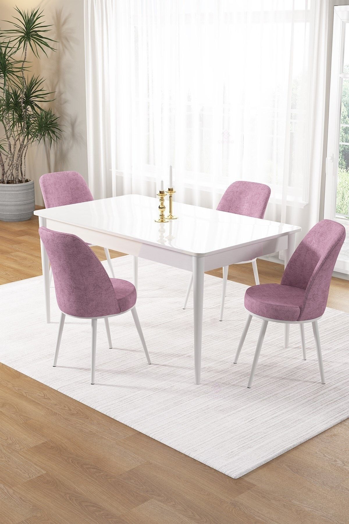 Pir Serisi, 80x130 Sabit Beyaz Yemek Masası Ve 4 Bordo Sandalye Pir Serisi, 80x130 Sabit Beyaz Yemek Masası Ve 4 Bordo Sandalye 25PİRBYZ04 تک سایز