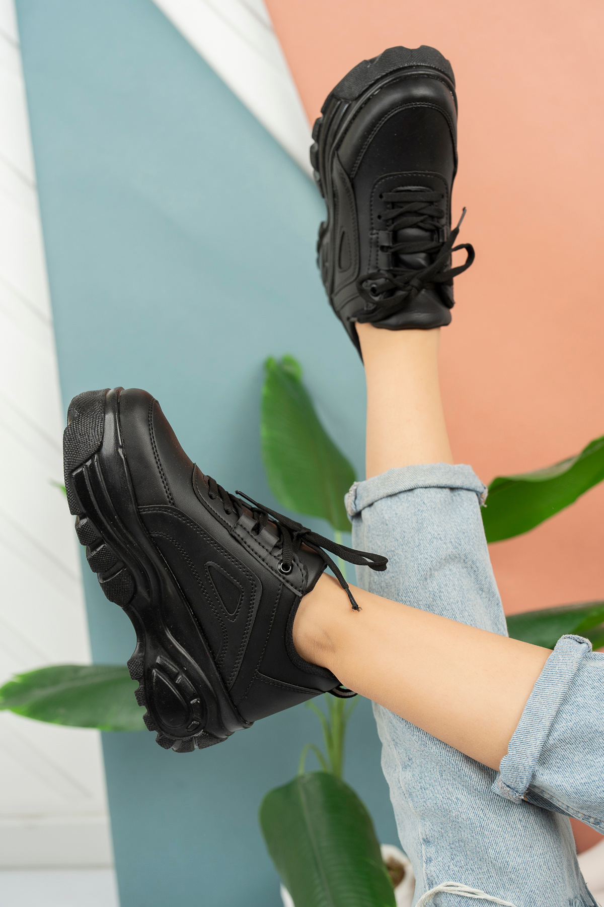 Yüksek Tabanlı Siyah Kadın Spor Ayakkabı - Peri Yüksek Tabanlı Siyah Kadın Spor Ayakkabı - Peri PERİ 40