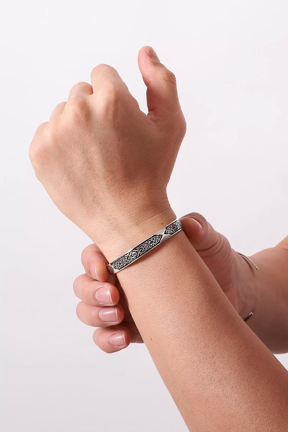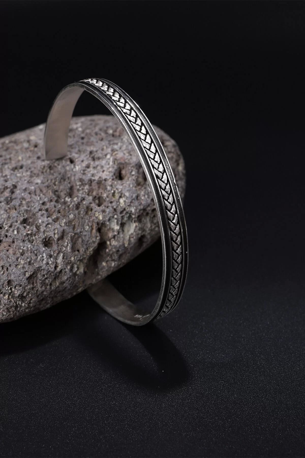 925 Ayar Zirkon Taşı Süslemeli Motifli Kelepçe Bileklik - Silver 925 Ayar Zirkon Taşı Süslemeli Motifli Kelepçe Bileklik - Silver P6781S2504 تک سایز