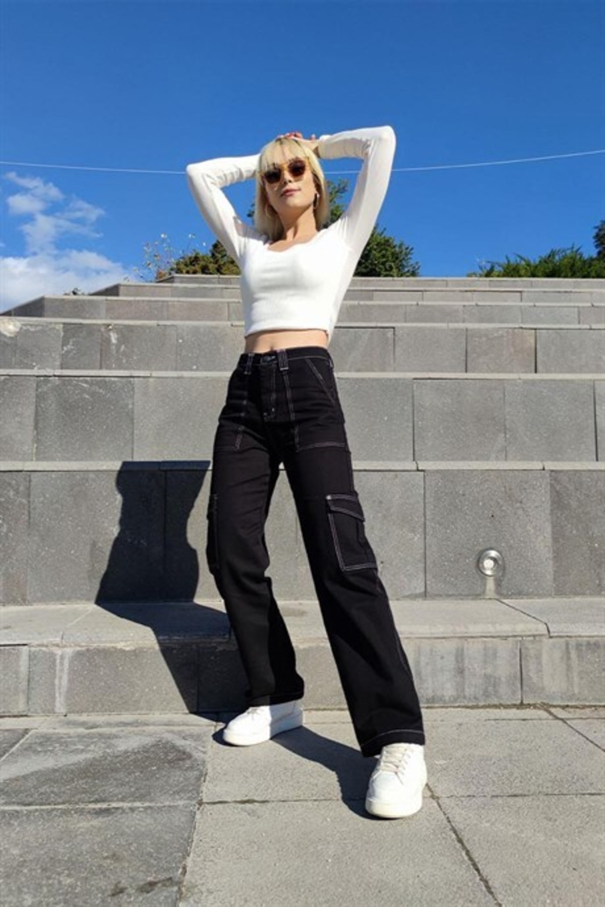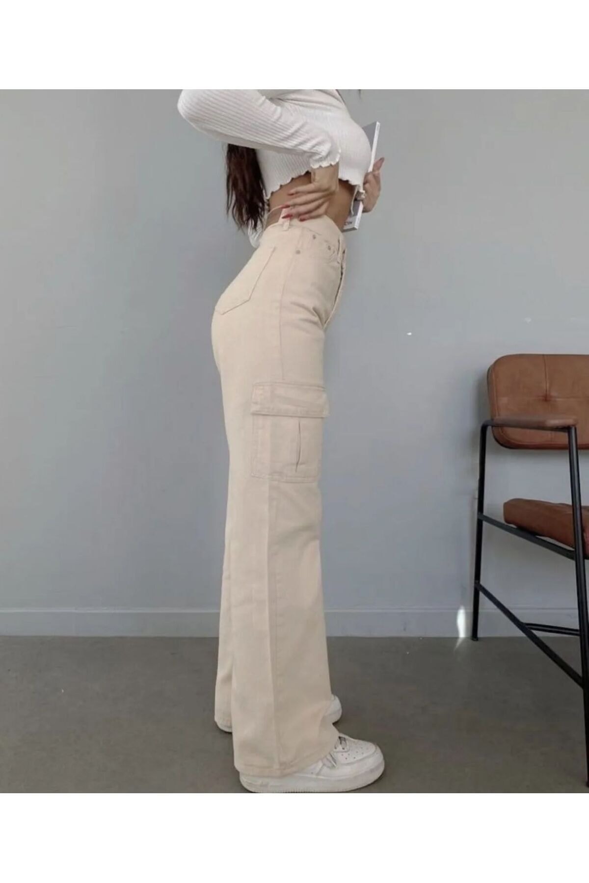 Beyaz Dikişli Yüksek Bel Salaş Kargo Cep Palazzo Kot Pantolon Beyaz Dikişli Yüksek Bel Salaş Kargo Cep Palazzo Kot Pantolon kargopalazzopantolon 33