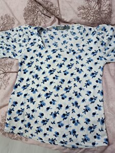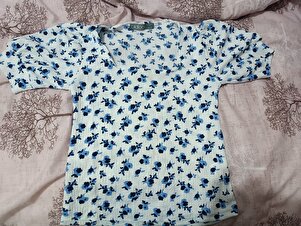 Kadın Çiçekli Beyaz Kare Yaka Kısa Kol Örme Bluz BLZ-19001883 Kadın Çiçekli Beyaz Kare Yaka Kısa Kol Örme Bluz BLZ-19001883 L