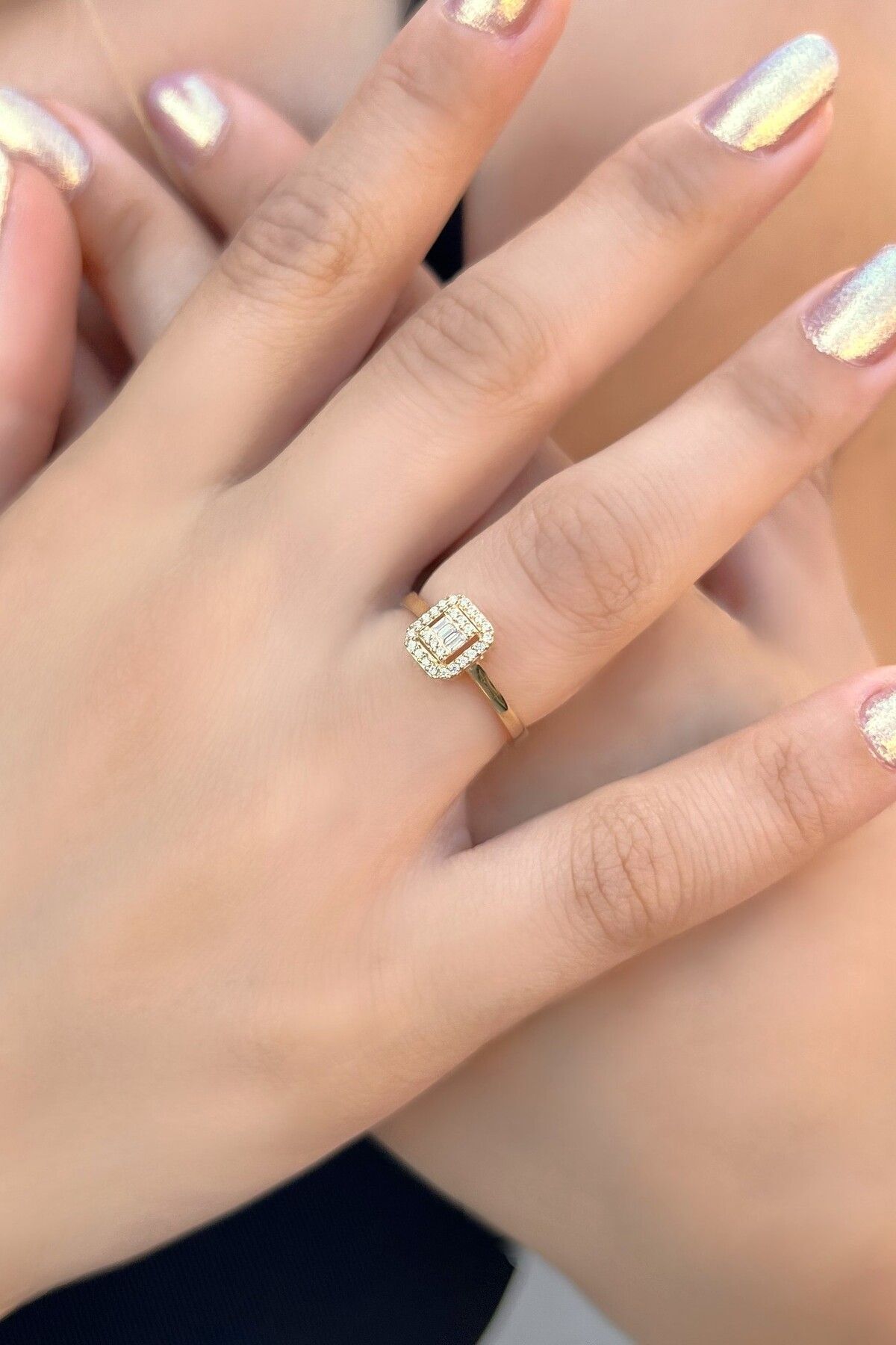 Baget Taşlı Beyaz Altın Yüzük Baget Taşlı Beyaz Altın Yüzük 8YZK3085 16