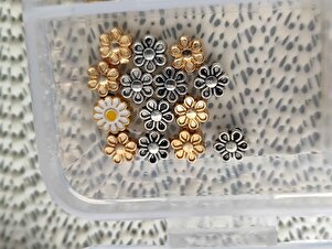 5 Adet - 7 Mm, Papatya Desenli Metal Uç, Ortadan Delik Zamak Ara Parça, Boyalı Gümüş Renk, 1. Kalite 5 Adet - 7 Mm, Papatya Desenli Metal Uç, Ortadan Delik Zamak Ara Parça, Boyalı Gümüş Renk, 1. Kalite YFZ-14-G تک سایز