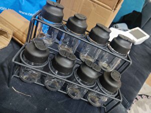 Metal Standlı 8'li Çift Kapaklı Cam Baharatlık Seti-tuzluk Biberlik Baharatlık Takım Metal Standlı 8'li Çift Kapaklı Cam Baharatlık Seti-tuzluk Biberlik Baharatlık Takım GM00355 تک سایز