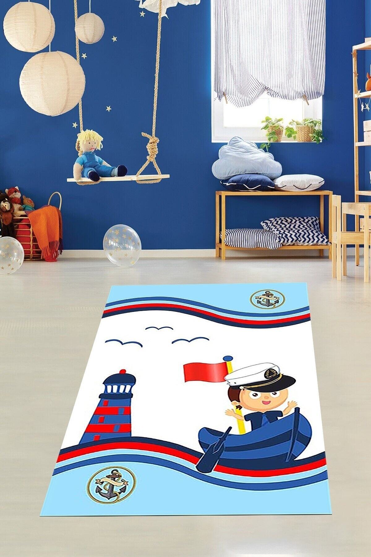 Denizci Korsan Desenli Dijital Baskı Yıkanabilir Kaymaz Taban Çocuk Odası Halısı Denizci Korsan Desenli Dijital Baskı Yıkanabilir Kaymaz Taban Çocuk Odası Halısı MEGÇ158 160 x 230