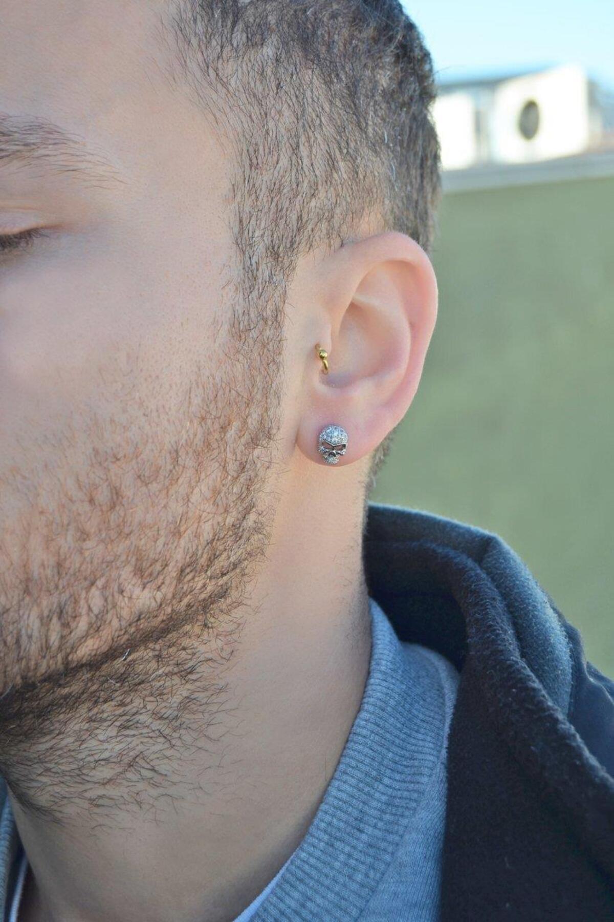 Zirkon Taşlı Gümüş Renkli Kurukafa Erkek Küpe Zirkon Taşlı Gümüş Renkli Kurukafa Erkek Küpe DEFGNRX3 تک سایز