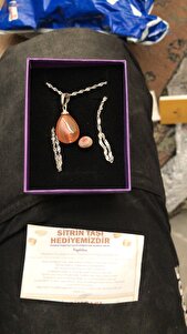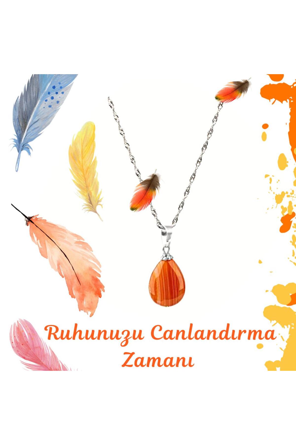 Karnelyan Akik Doğal Taş Gümüş Zincir Damla Kolye Karnelyan Akik Doğal Taş Gümüş Zincir Damla Kolye KL-0815 50 cm