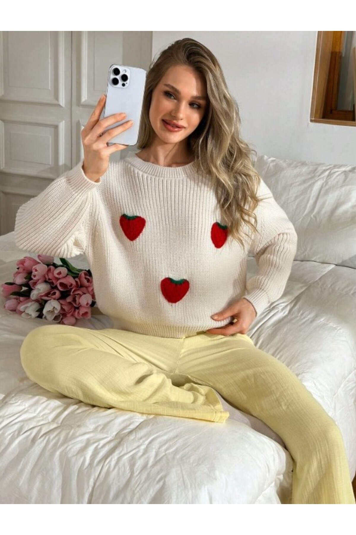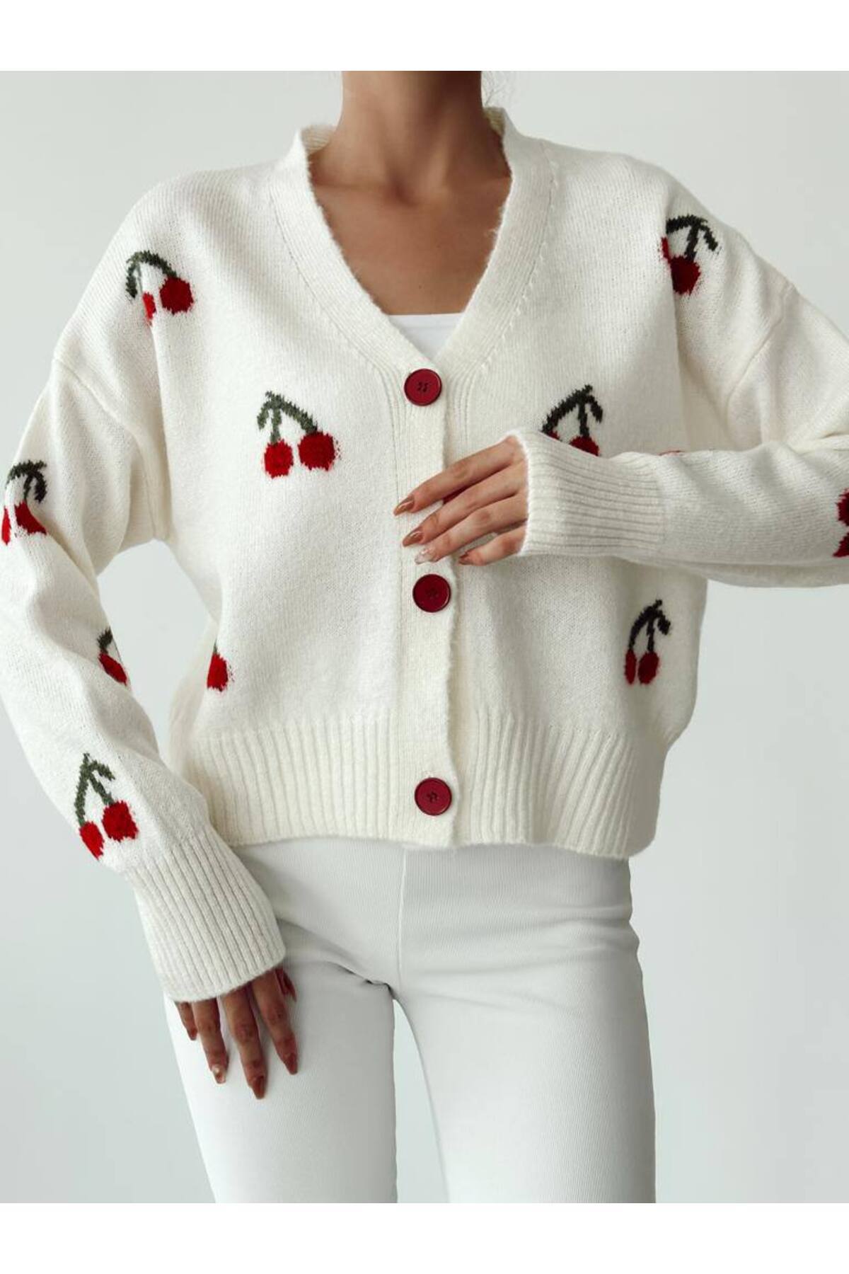 Kadın Çilekli Düğmeli Hırka Kadın Çilekli Düğmeli Hırka 008 Standart