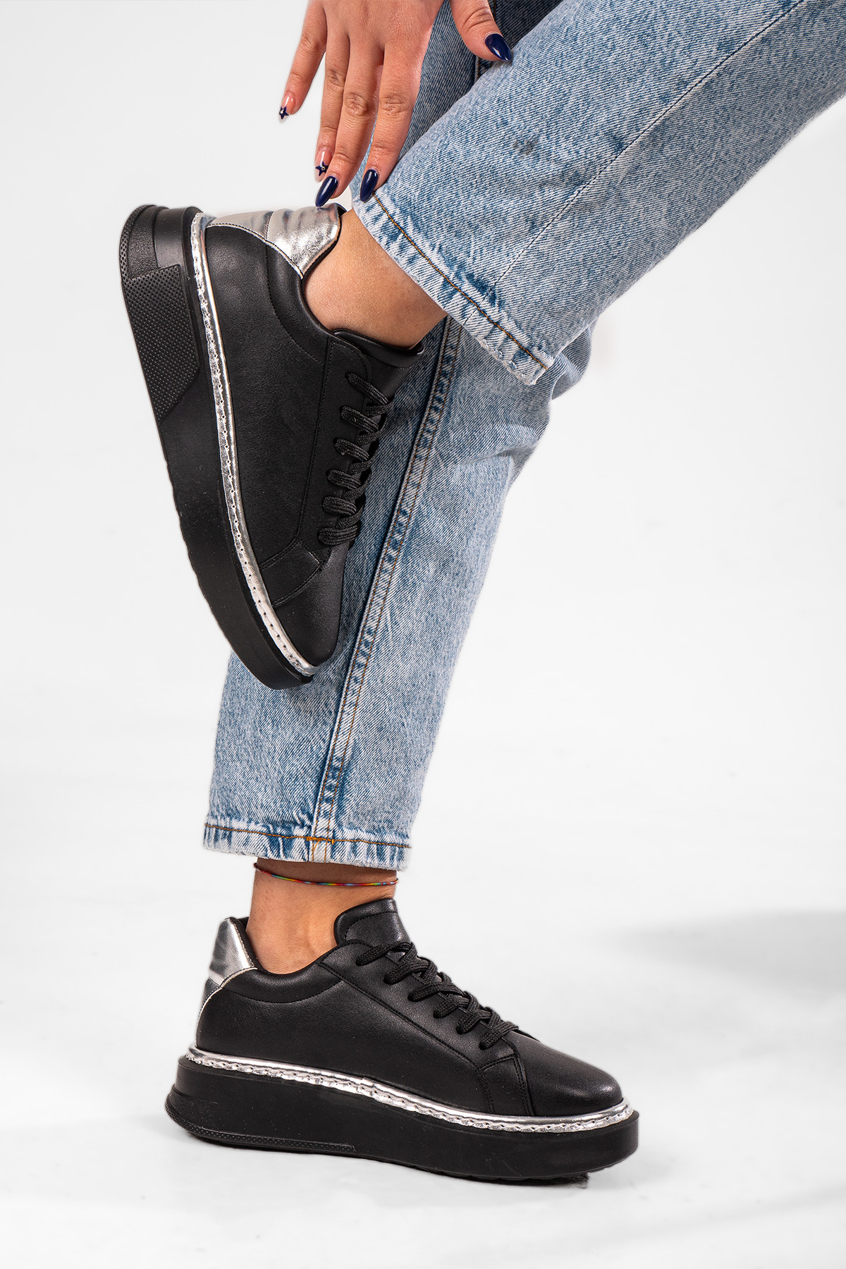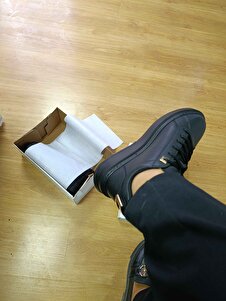 Gold Detaylı Bağcıklı Rahat Siyah Sneaker Spor Ayakkabı Gold Detaylı Bağcıklı Rahat Siyah Sneaker Spor Ayakkabı 09130 40
