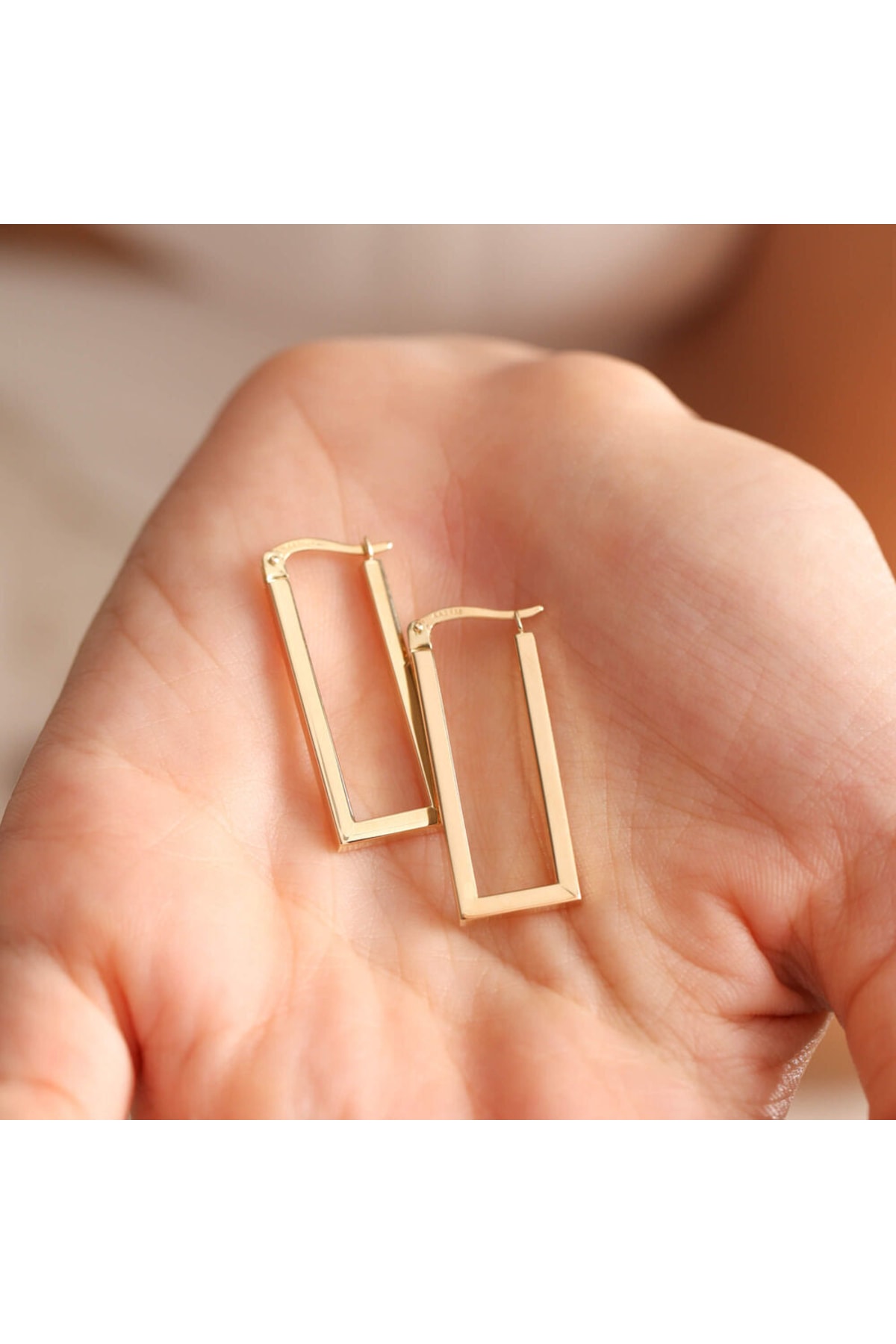 Dikdörtgen Taşlı Altın Halka Küpe 1.5 Cm Mini Dikdörtgen Taşlı Altın Halka Küpe 1.5 Cm Mini T12408 تک سایز