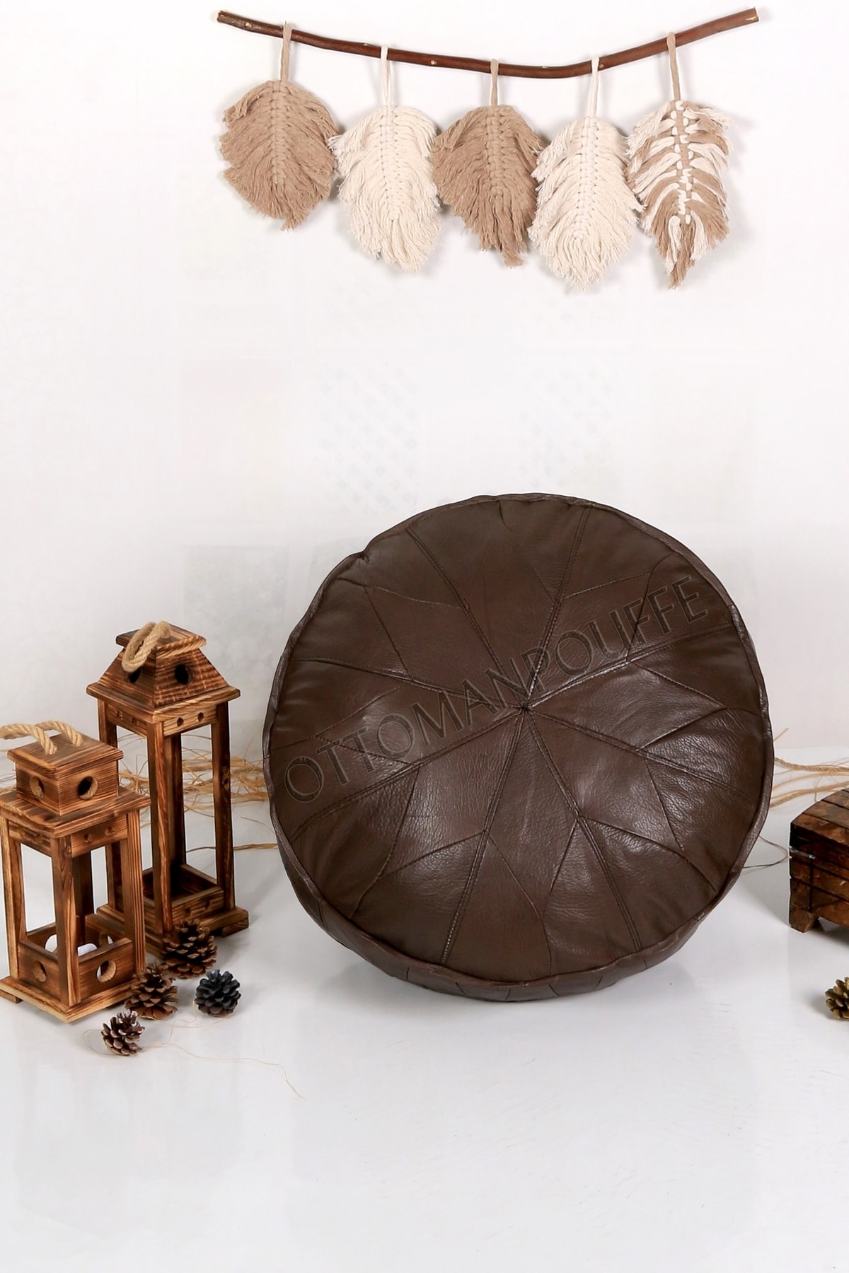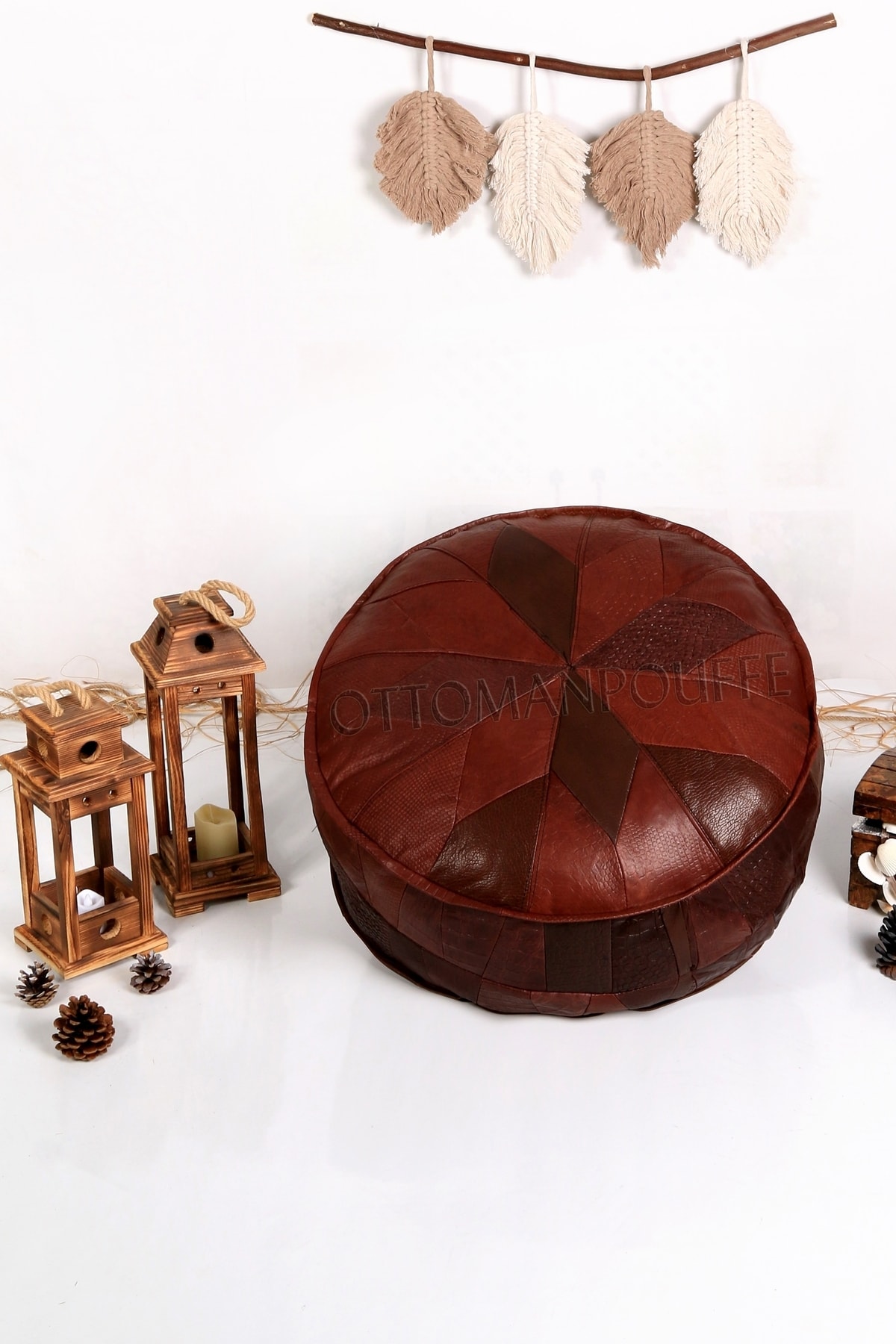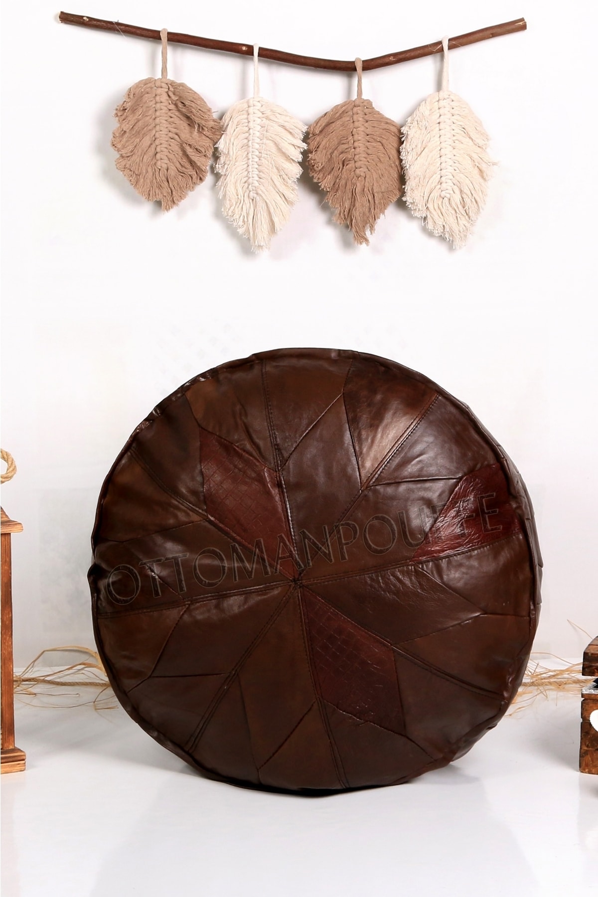 - El Yapımı Deri Bohem Ottoman Puf Minder 60cm - El Yapımı Deri Bohem Ottoman Puf Minder 60cm ÖZEL SERİ تک سایز
