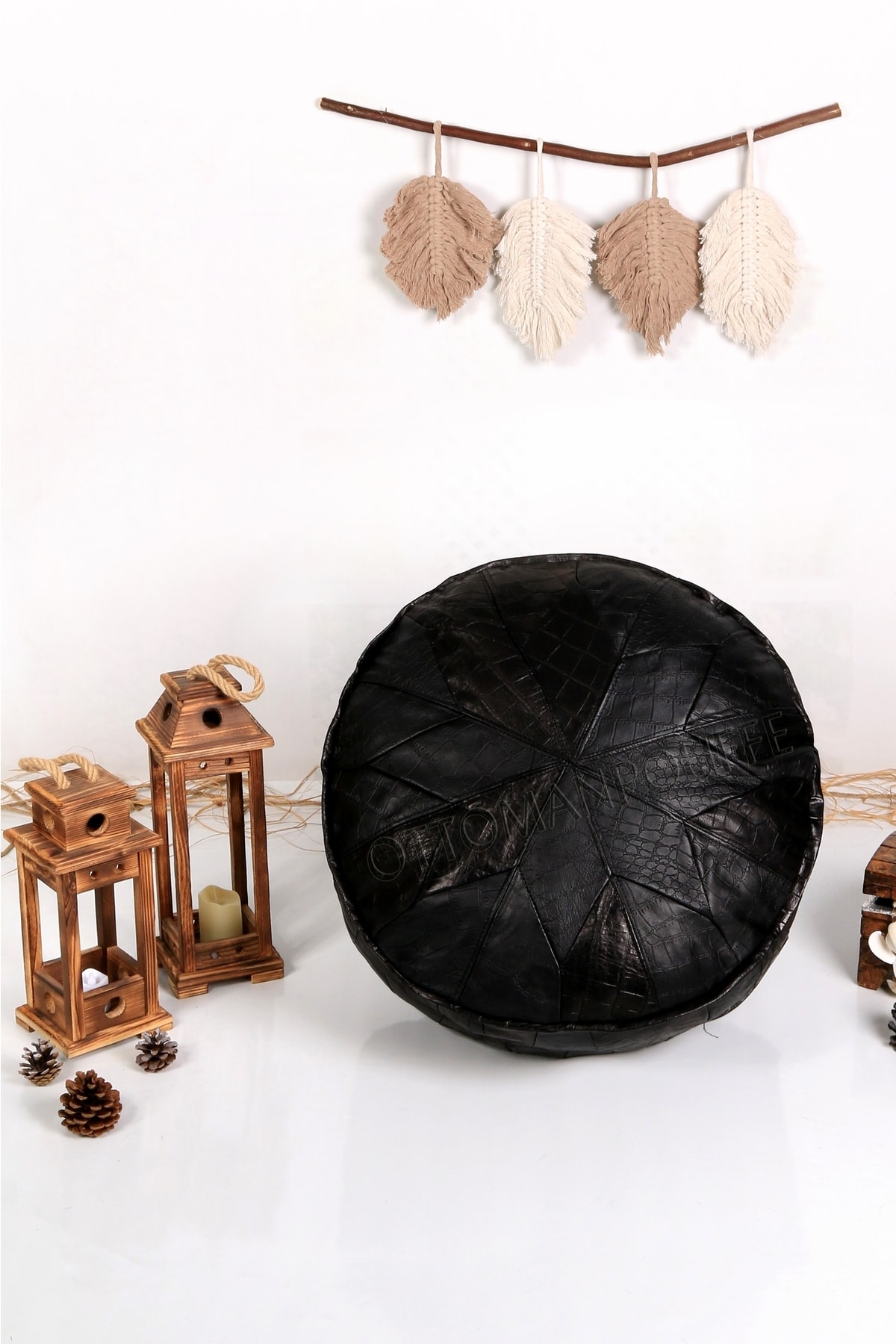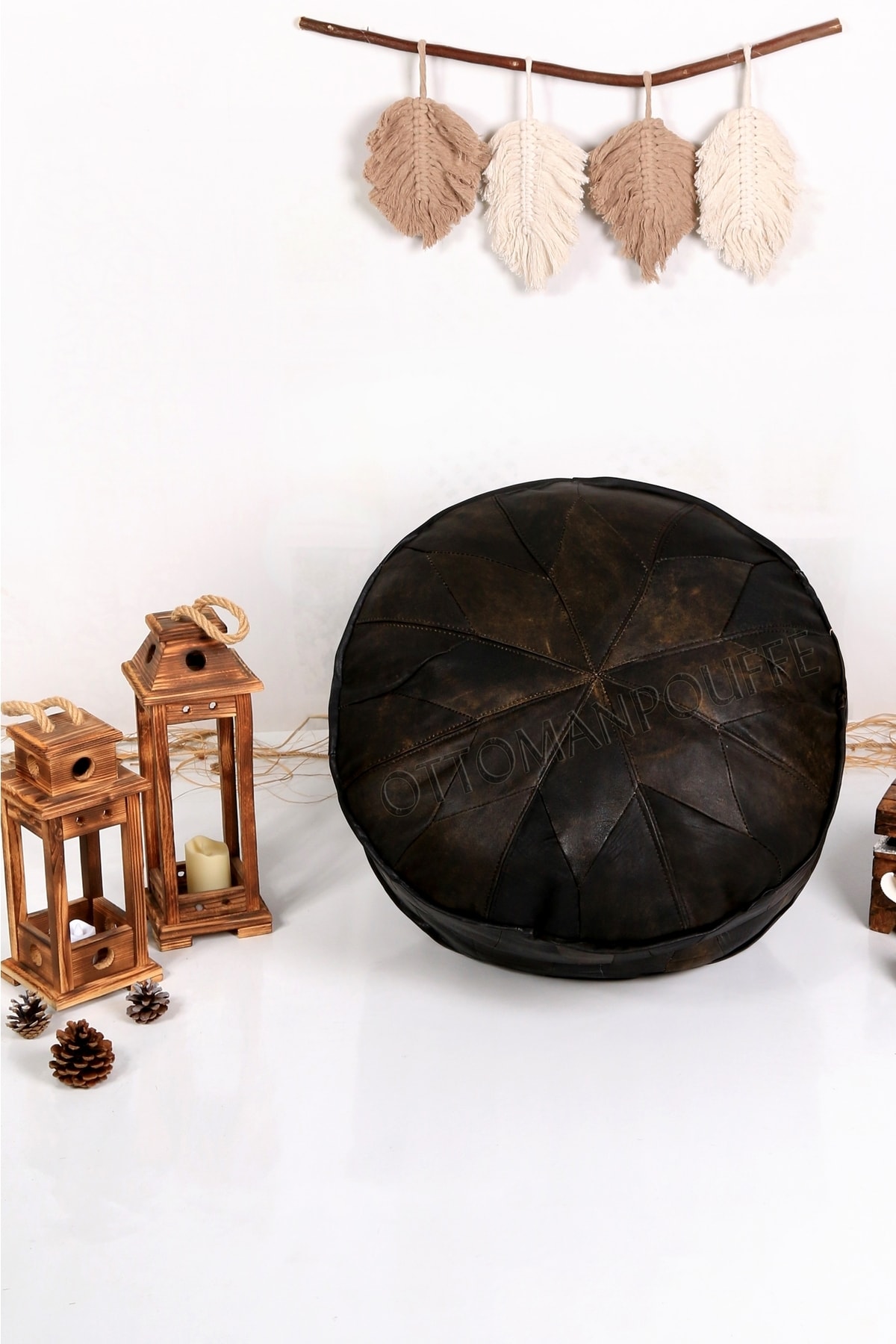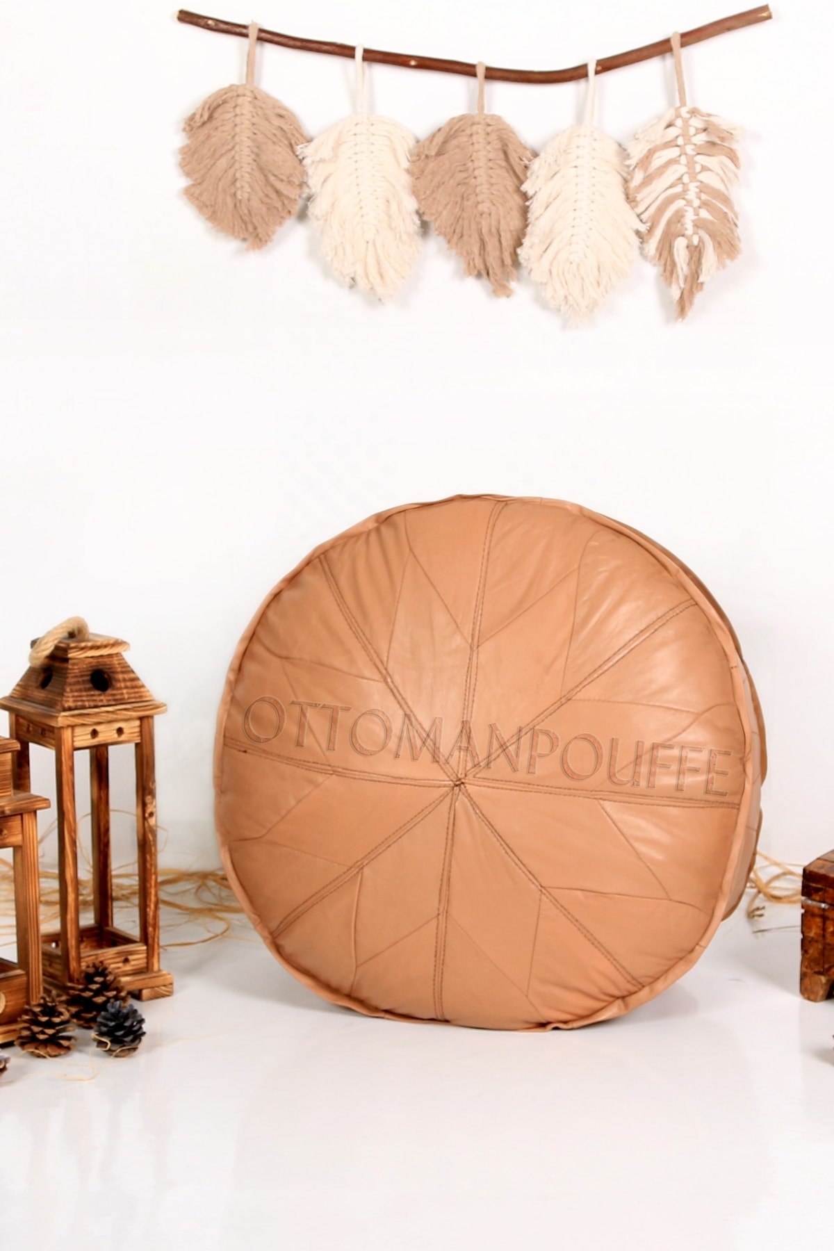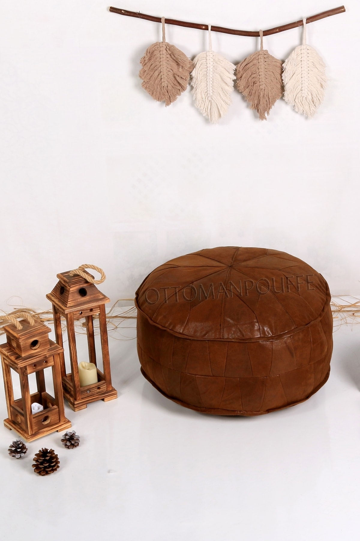 - El Yapımı Deri Bohem Ottoman Puf Minder 60cm - El Yapımı Deri Bohem Ottoman Puf Minder 60cm ÖZEL SERİ تک سایز