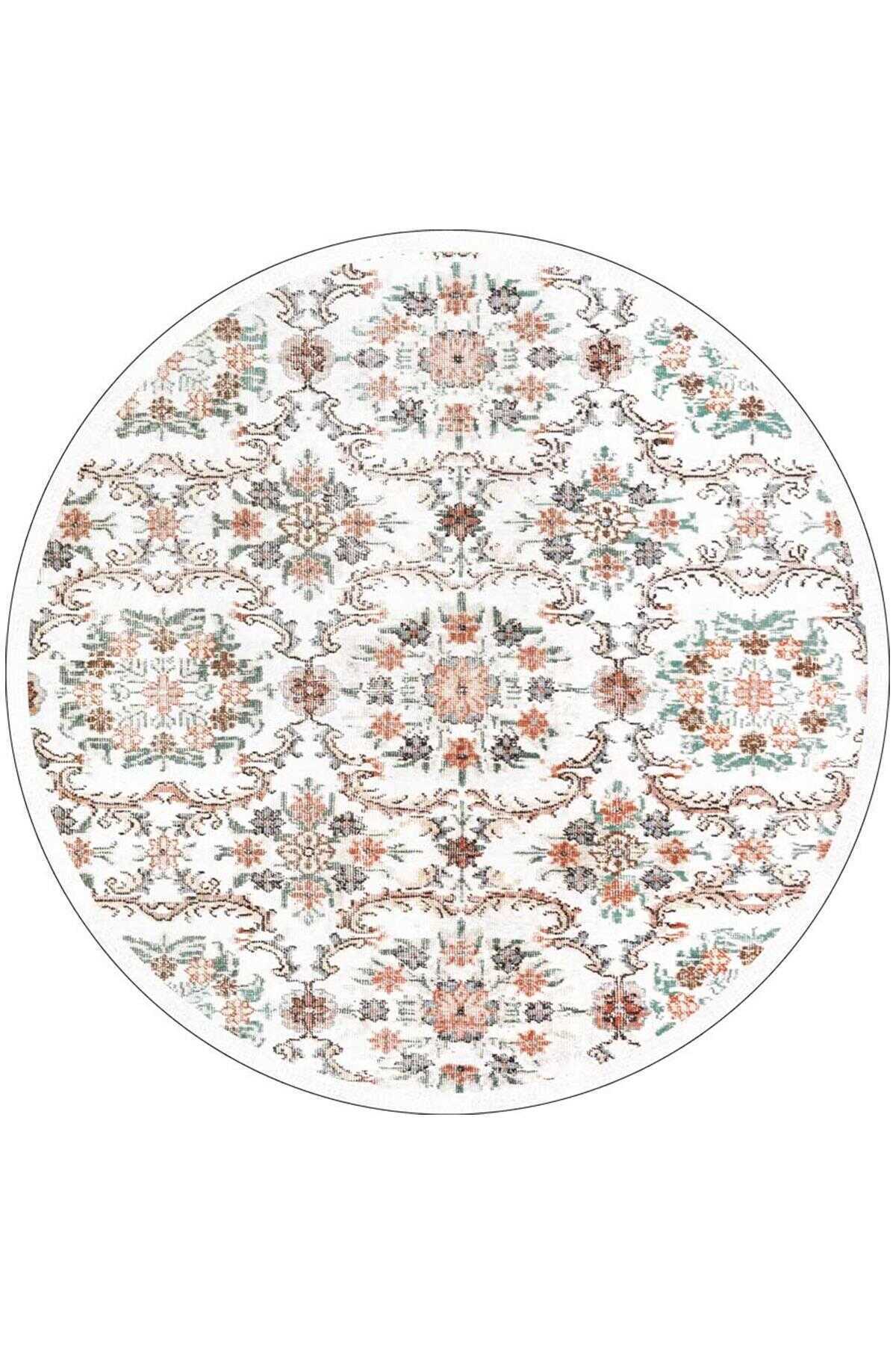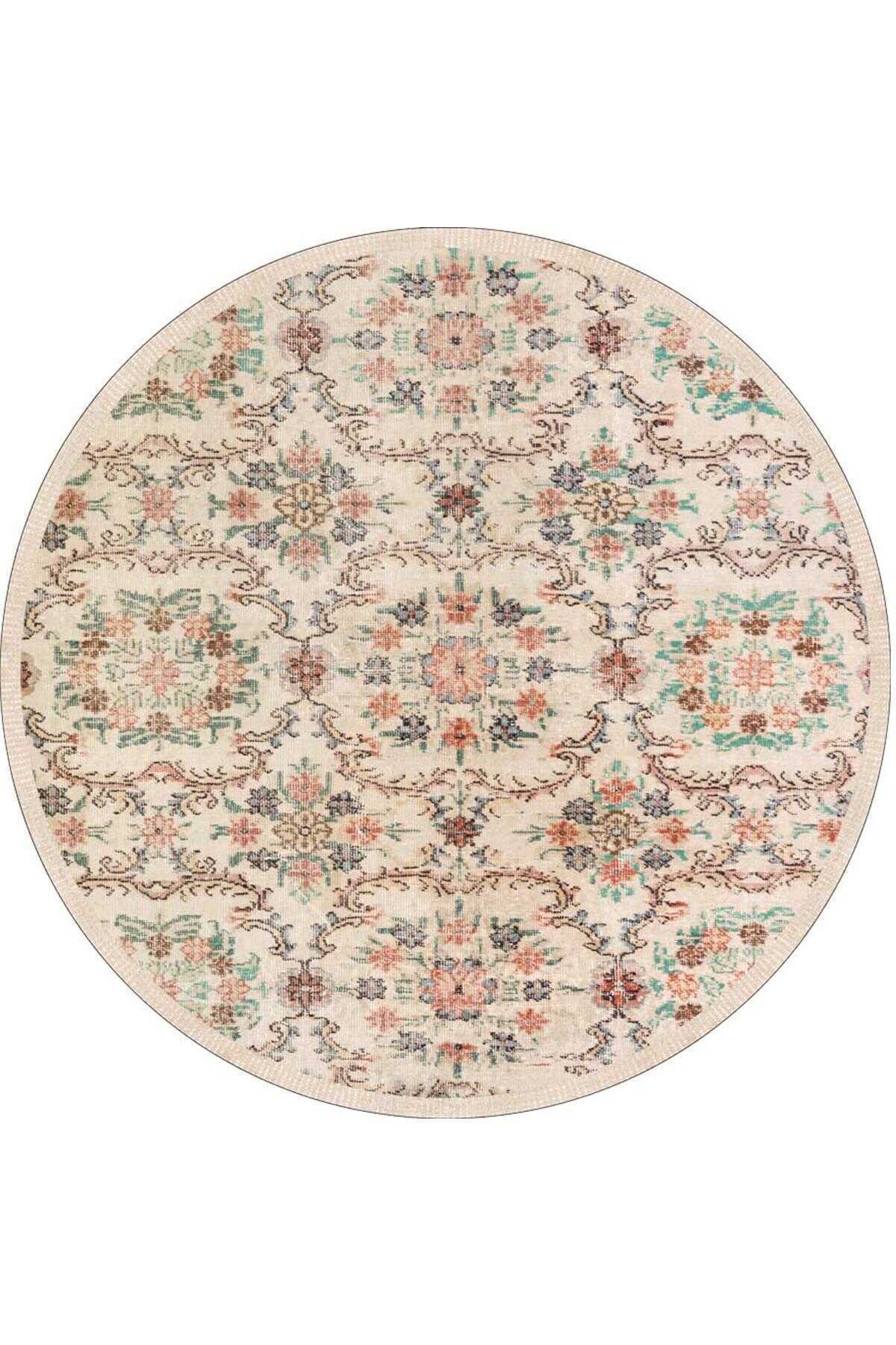 Vintage Desen Pamuk Taban Yıkanabilir Yuvarlak Halı Vintage Desen Pamuk Taban Yıkanabilir Yuvarlak Halı TD1127-101 160 x 160