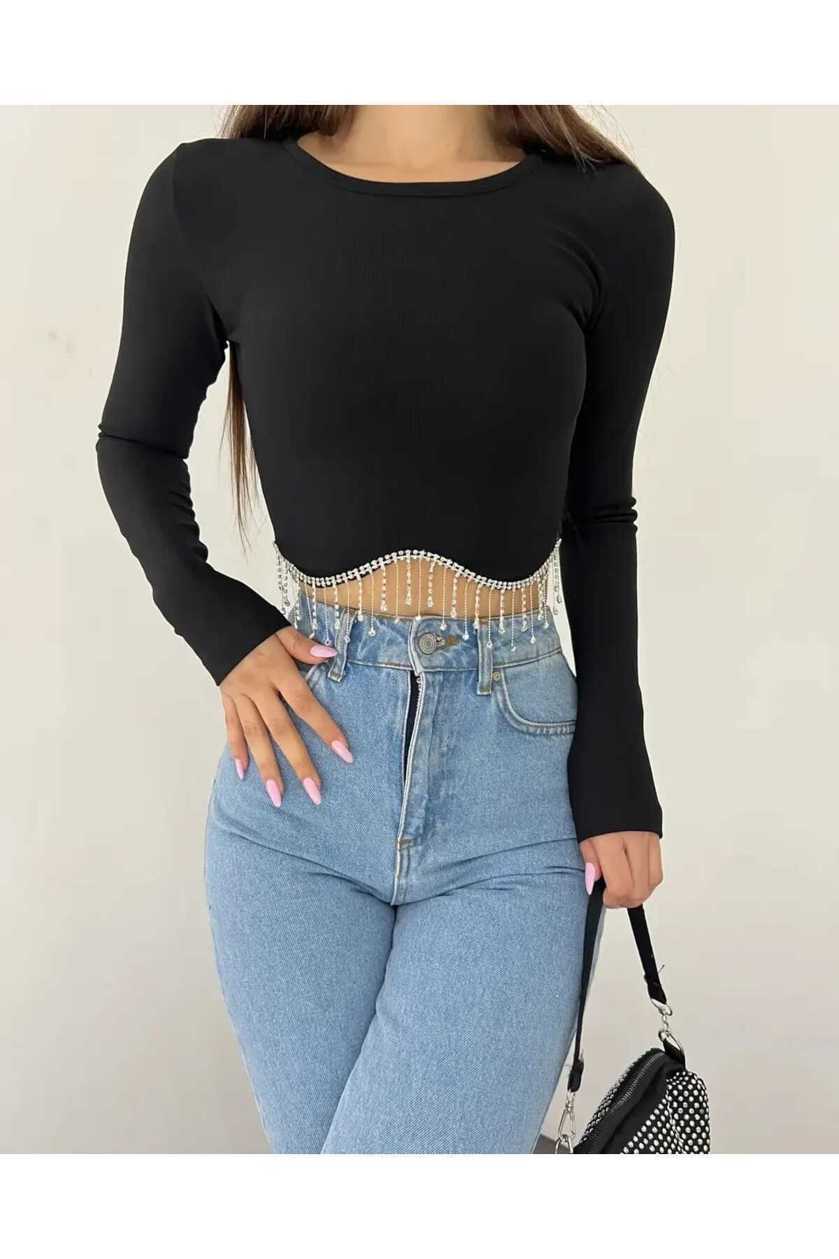Yaka Ve Taş Detaylı Soft Kadife Crop-bluz Bordo Yaka Ve Taş Detaylı Soft Kadife Crop-bluz Bordo NSL1002-BL1003 XL