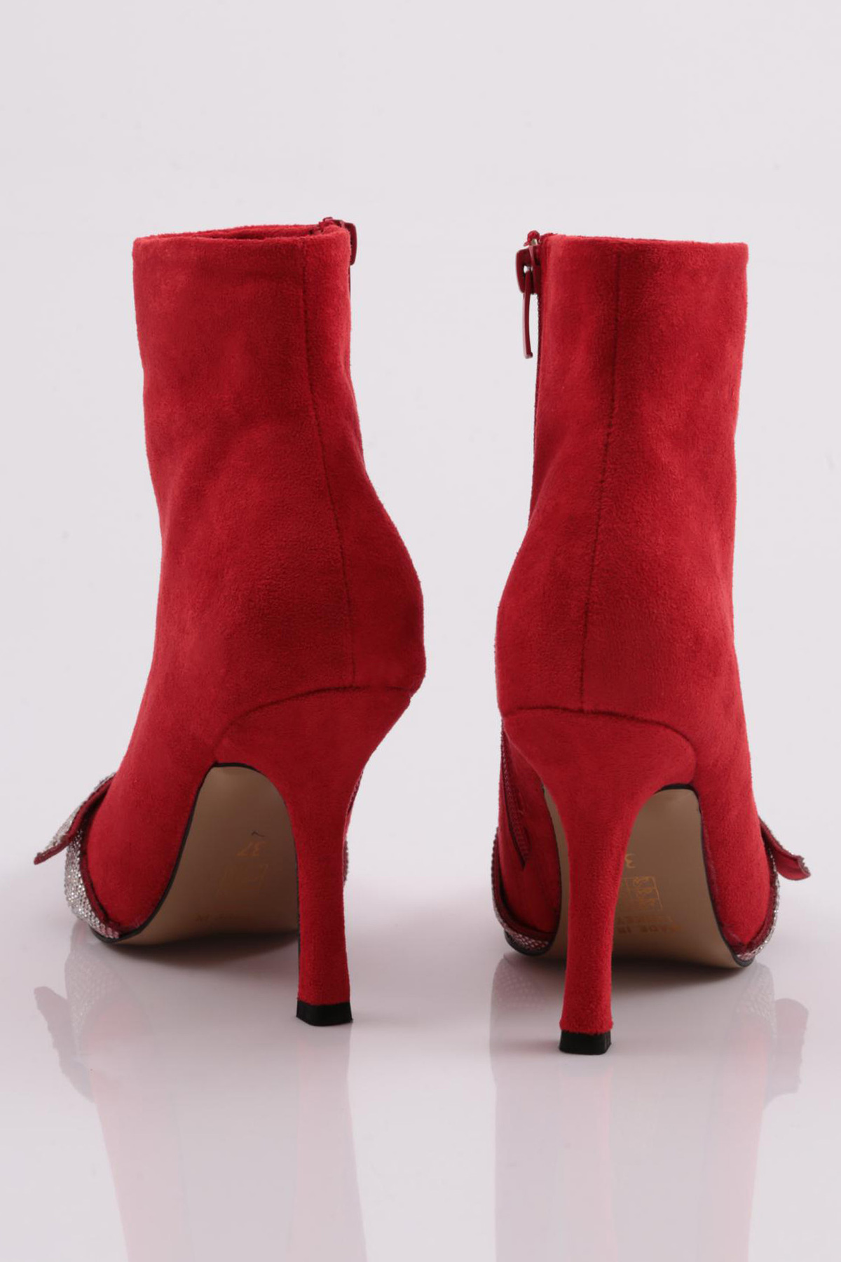 Çarpaz Taş Detaylı Kadın Topuklu Bot Kırmızı 6836535 Çarpaz Taş Detaylı Kadın Topuklu Bot Kırmızı 6836535 40