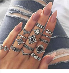 Silver Çoklu Yüzük Seti Silver Çoklu Yüzük Seti 5A030 تک سایز