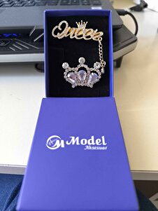 Taç Queen Kristal Taşlı Zincir Detaylı Broş Taç Queen Kristal Taşlı Zincir Detaylı Broş Arv7320 تک سایز