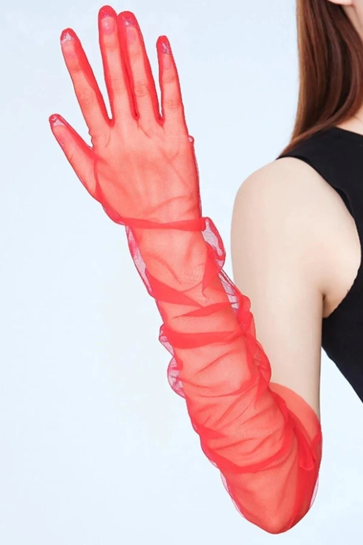 Kırmızı Tül Eldiven Düz Transparan Eldiven Kırmızı Tül Eldiven Düz Transparan Eldiven TYC00748832397 M